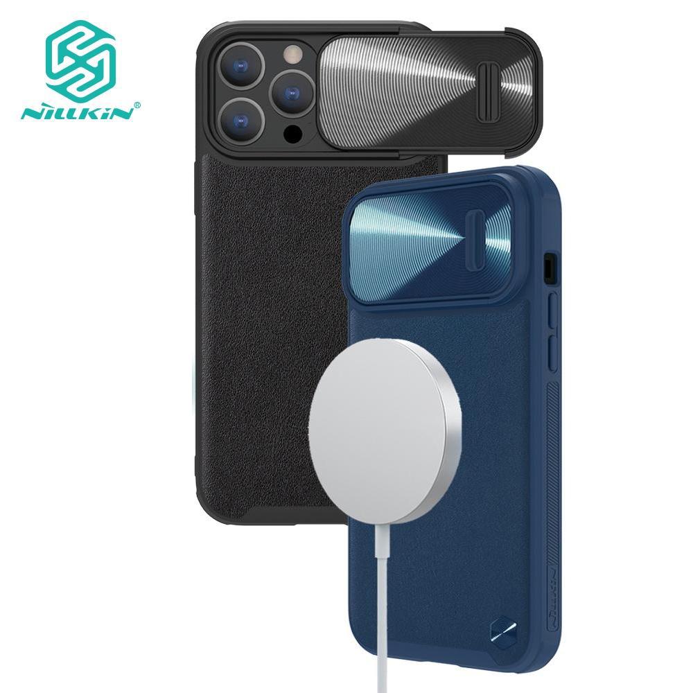NILLKIN Магнитный кожаный чехол CamShield S для iPhone 14 Pro Max, чехол для телефона, слайдер из сплава, противоударная задняя крышка — купить товар онлайн с бесплатной доставкой до всему миру!