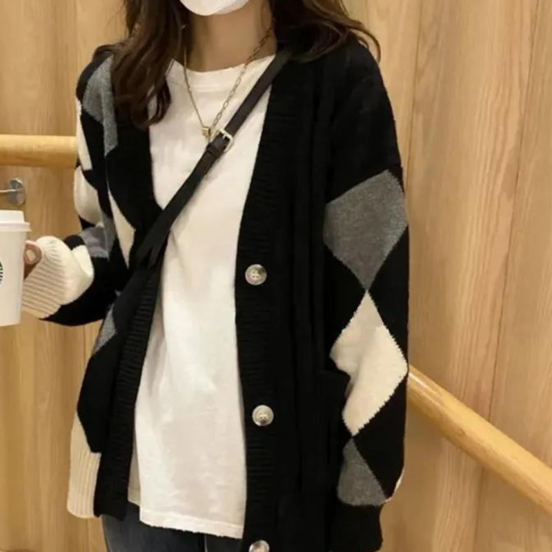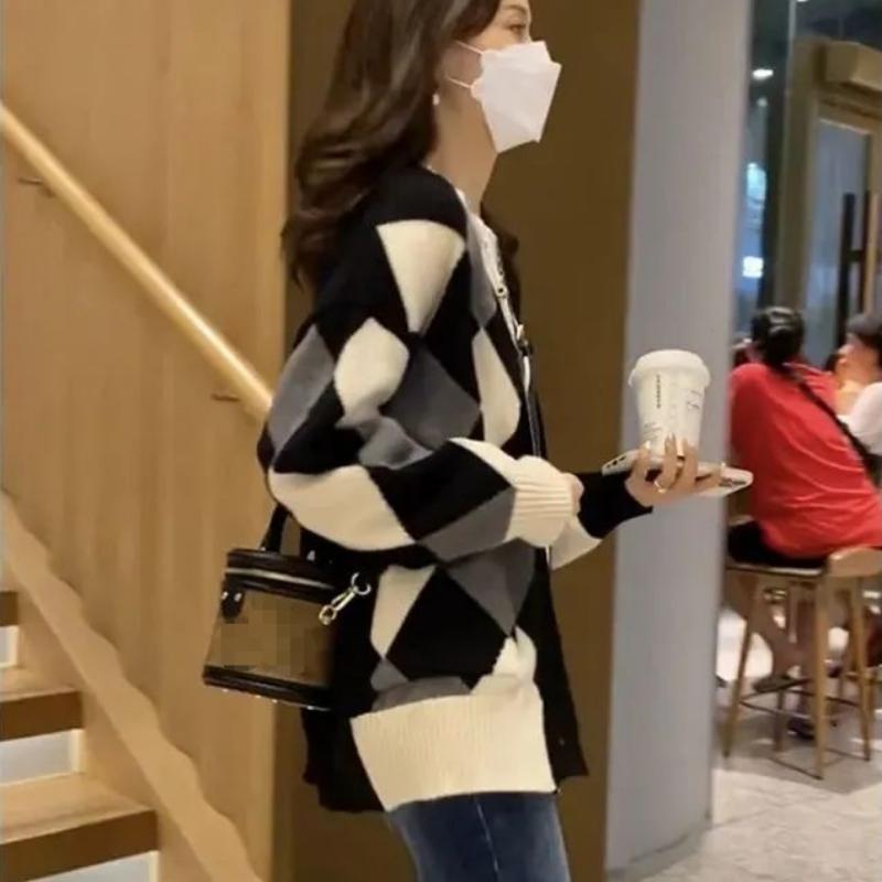 Кардиган-свитер женский, новинка 2022 года, весенне-осенний вязаный кардиган в стиле ретро со стразами, женский ленивый кардиган для женщин