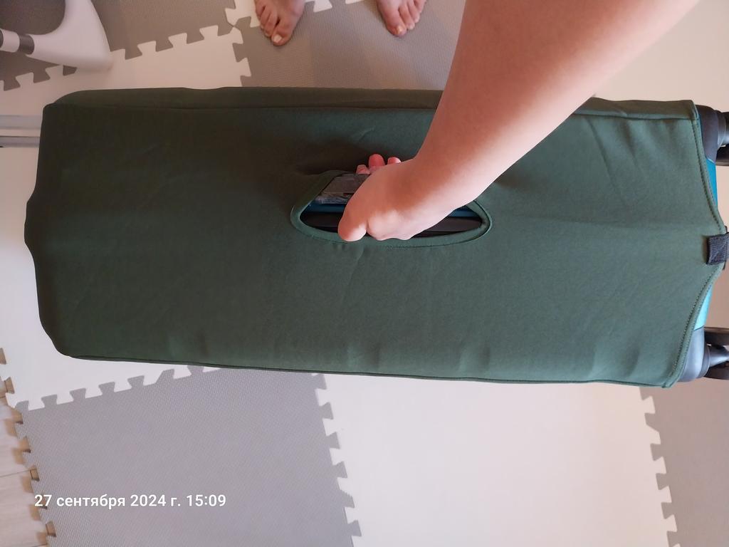 Ткань плотная, тянется.. Немного ушить надо в месте где змейка и вырезы под ручки рядом с ручкой,а не где ручка(немного не удобно). По размеру четко и даже можно еще на чуть шире чемодан натянуть. Фото размера чемодана,на который подошел чехол прилогаю.
