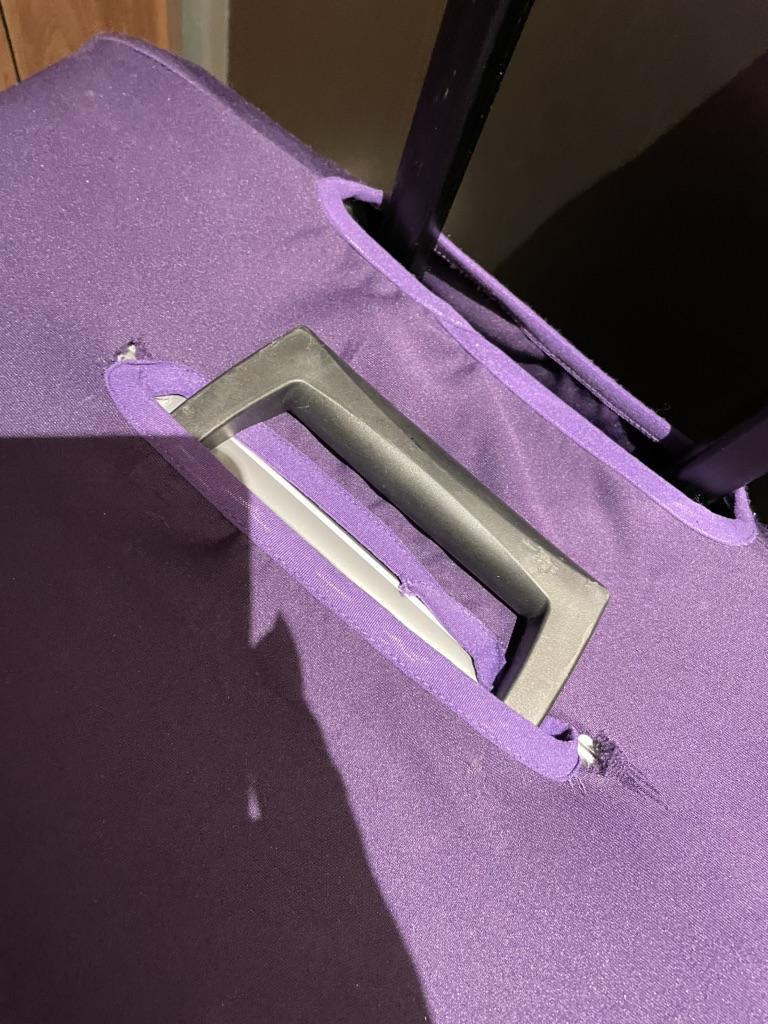 Вот моя первая поездка с чехлом и вот результат- превратился в тряпку, которой уже нельзя пользоваться- скатался и порвался во всех местах где были швы