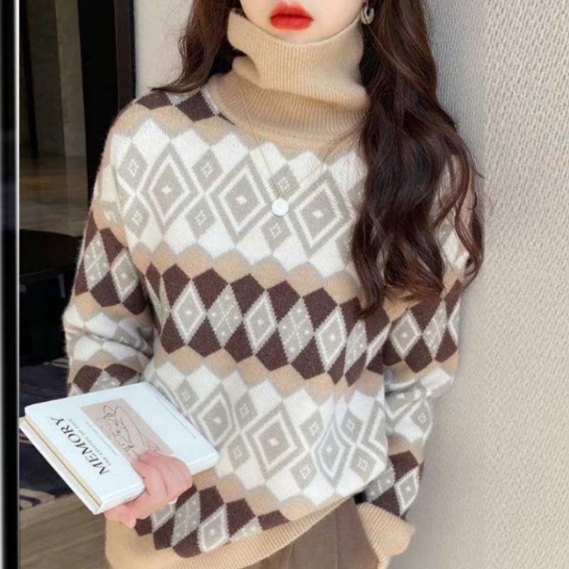 Свитер с высоким воротником, женский пуловер, осень-зима 2022, винтажный свободный свободный свитер с длинным рукавом в стиле вестерн, повседневный вязаный женский свитер — купить товар онлайн с бесплатной доставкой по всему миру!