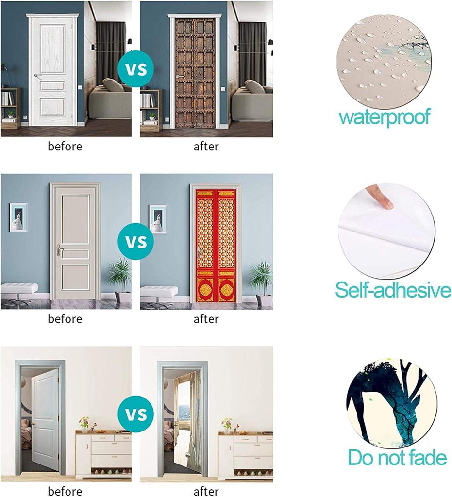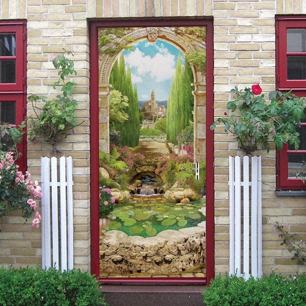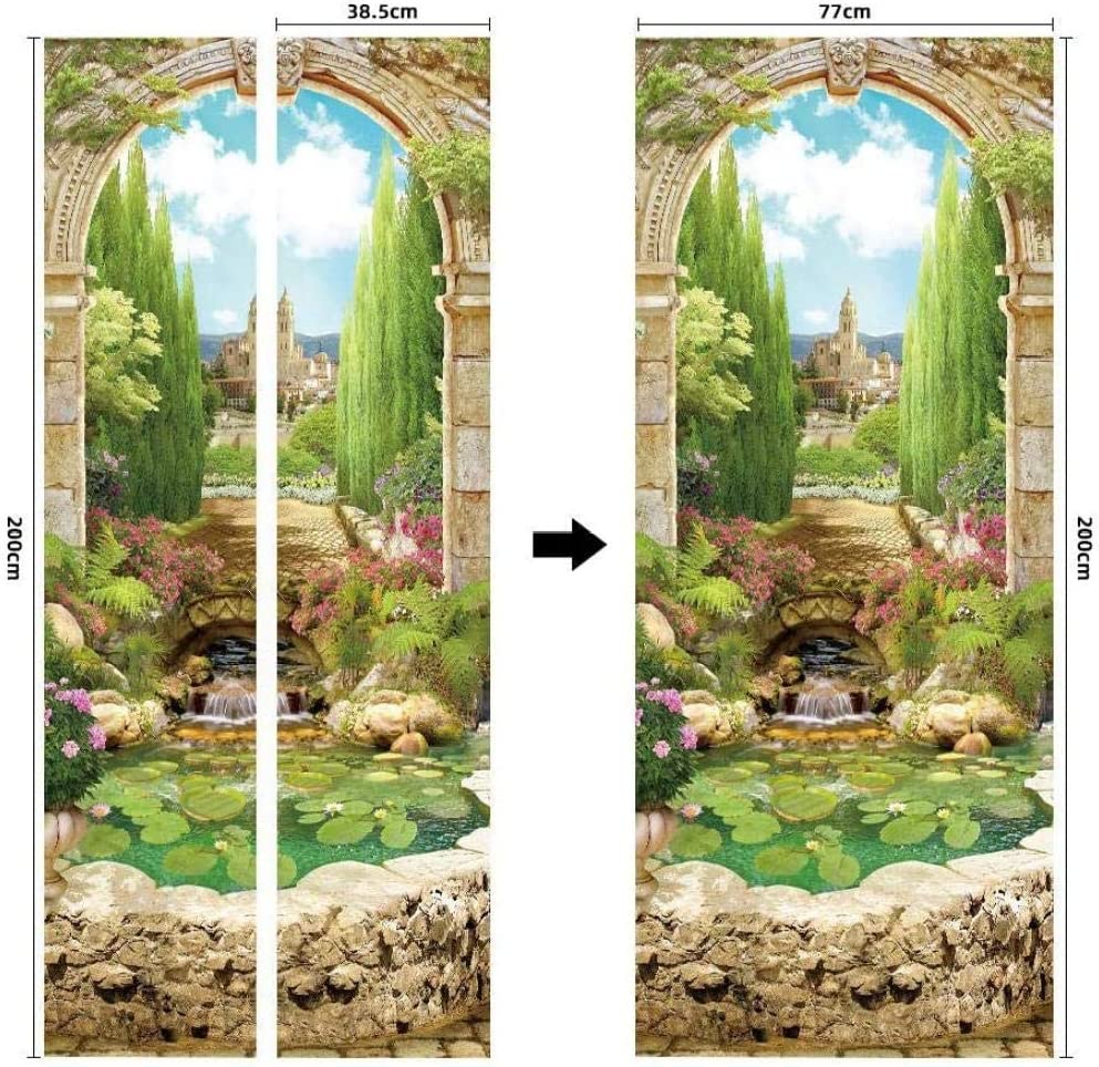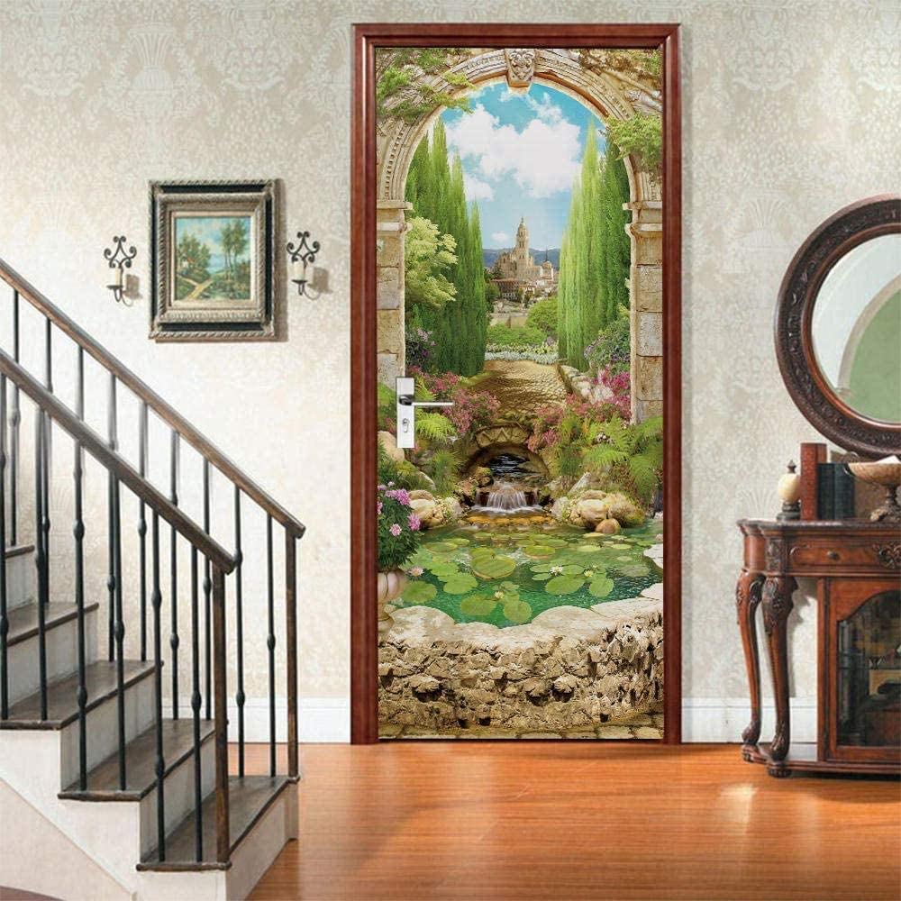 Наклейки на дверь с цветами, самоклеящиеся пейзажные наклейки на дверь, водонепроницаемые обои «сделай сам», зеленое дерево, замок, фреска