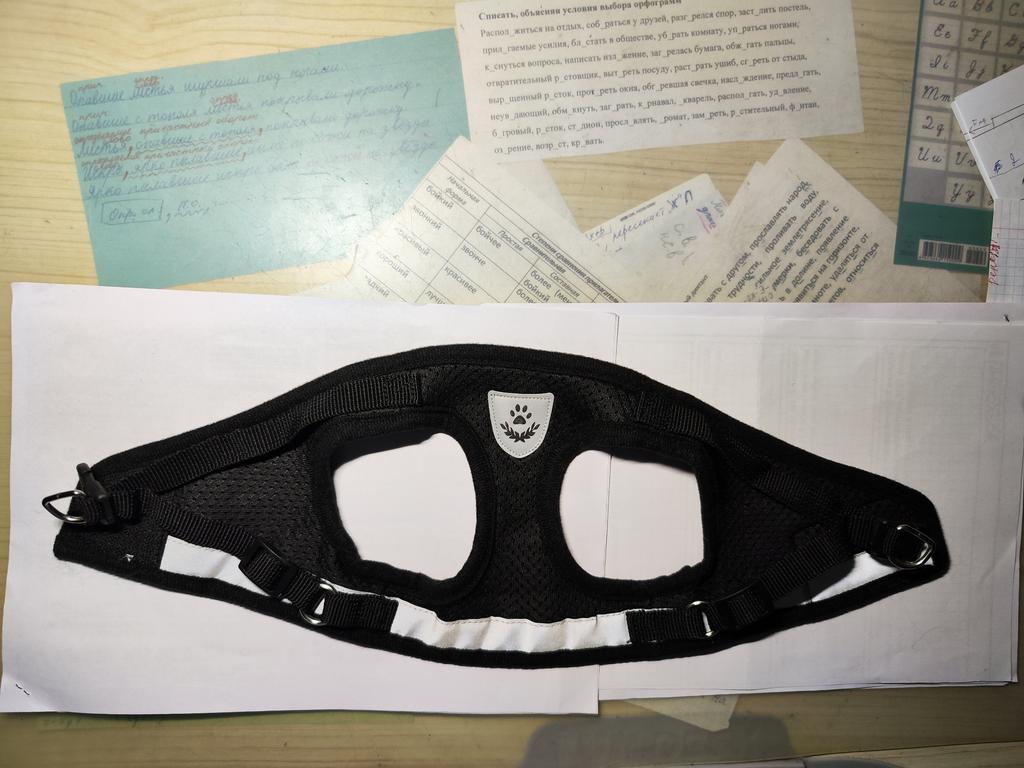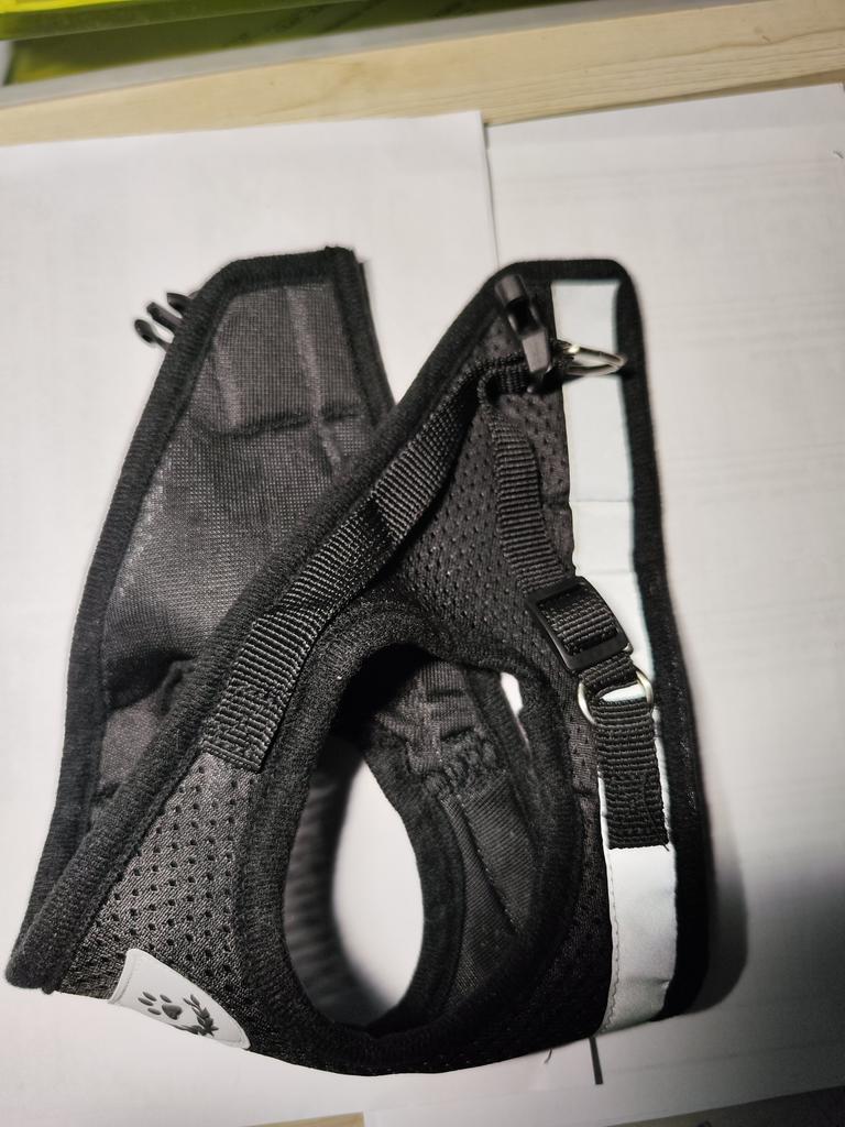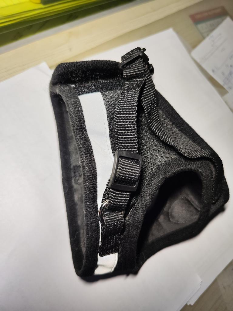 Шлейка отличная, качество хорошее, щенку немного велика, но в перспективе будет самое то. Немного перекошен в пошиве, но это не влияет на носку.