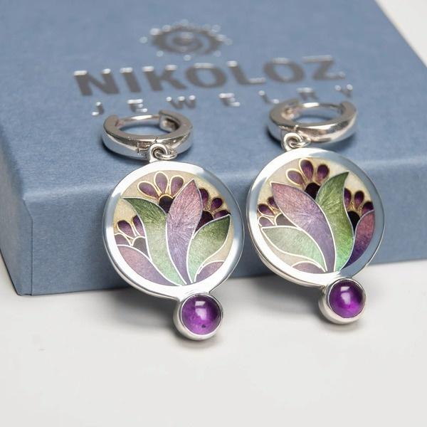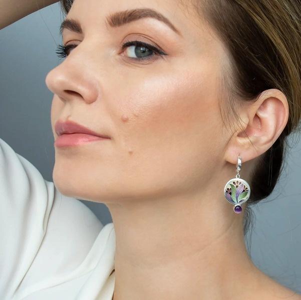 Изысканные женские модные европейские и американские эмалированные красочные и элегантные серьги. Универсальные серьги-подвески с супер волшебным цветком и аметистом JWLY.