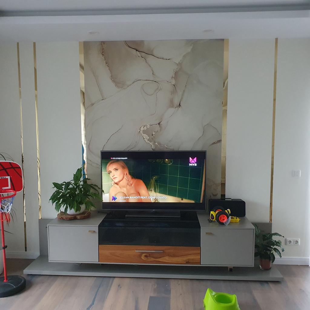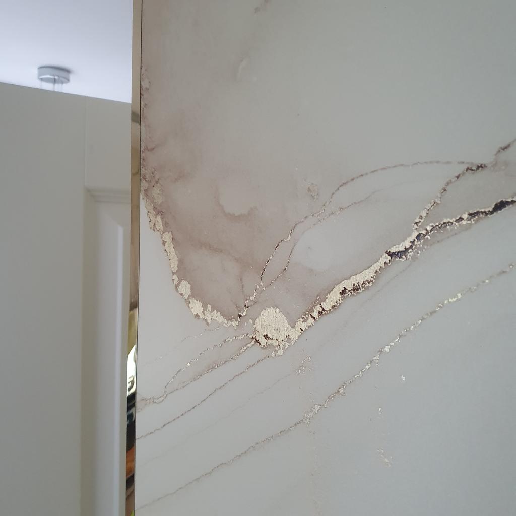 Отличное качество. Алюминиевые профили, клей очень крепкий, видно на фото как оторвало шпатлёвку🙄, в процессе примерки. Буду заказывать ещё одну полосу 😉. Пока не пробовала, но думаю при уборке нужно осторожно протирать дабы избежать появления царапин. С обратной стороны профили серого цвета.