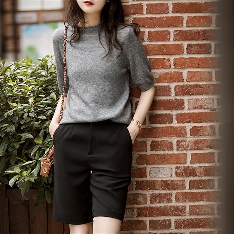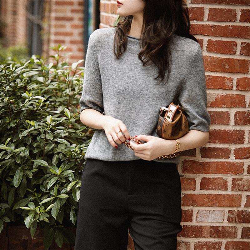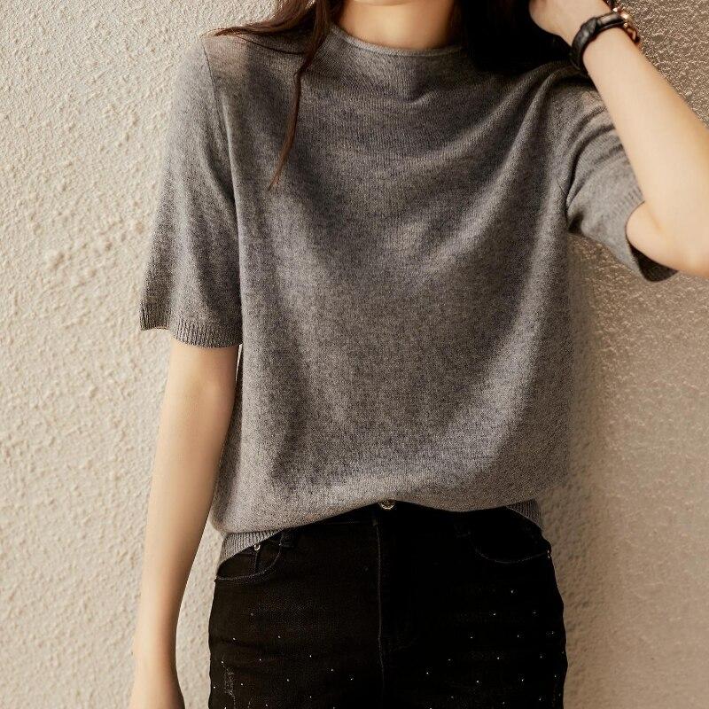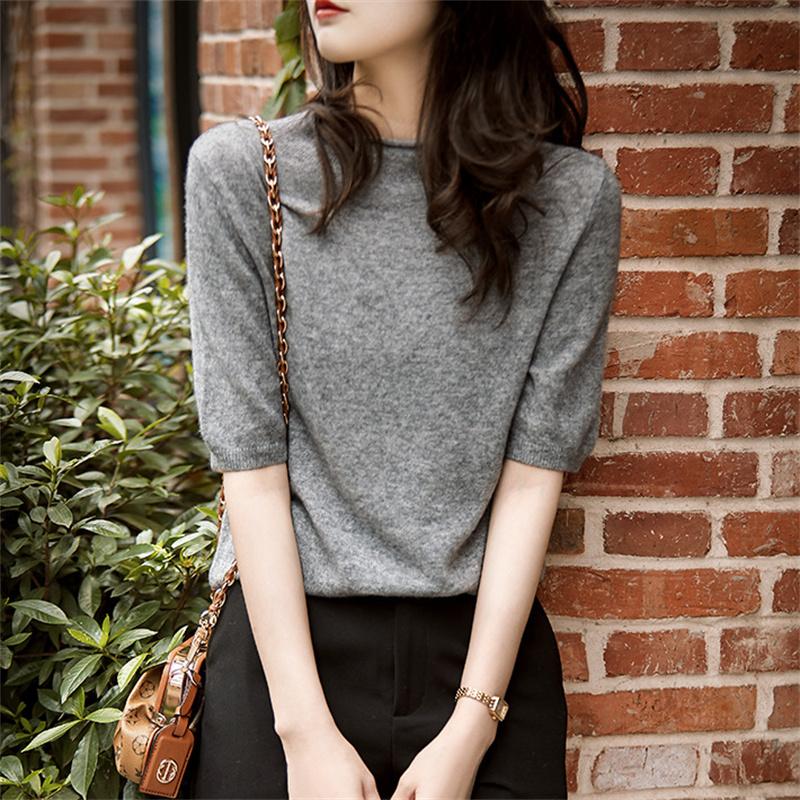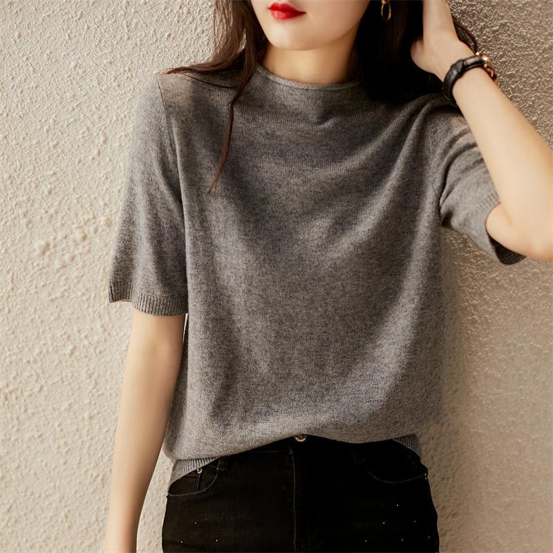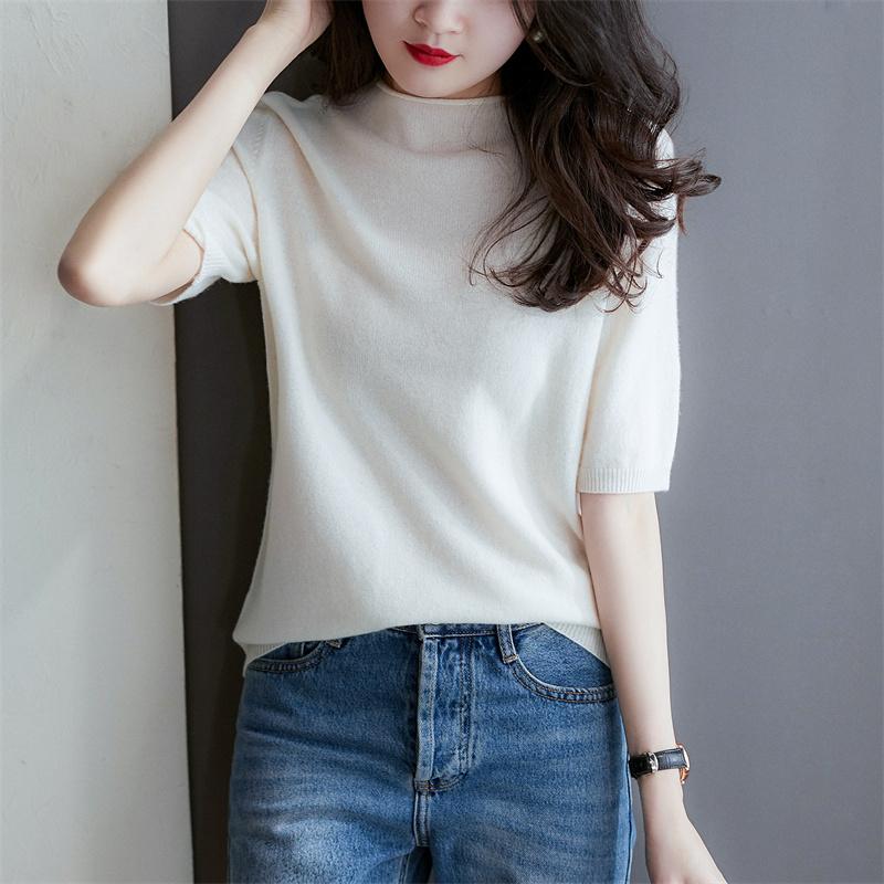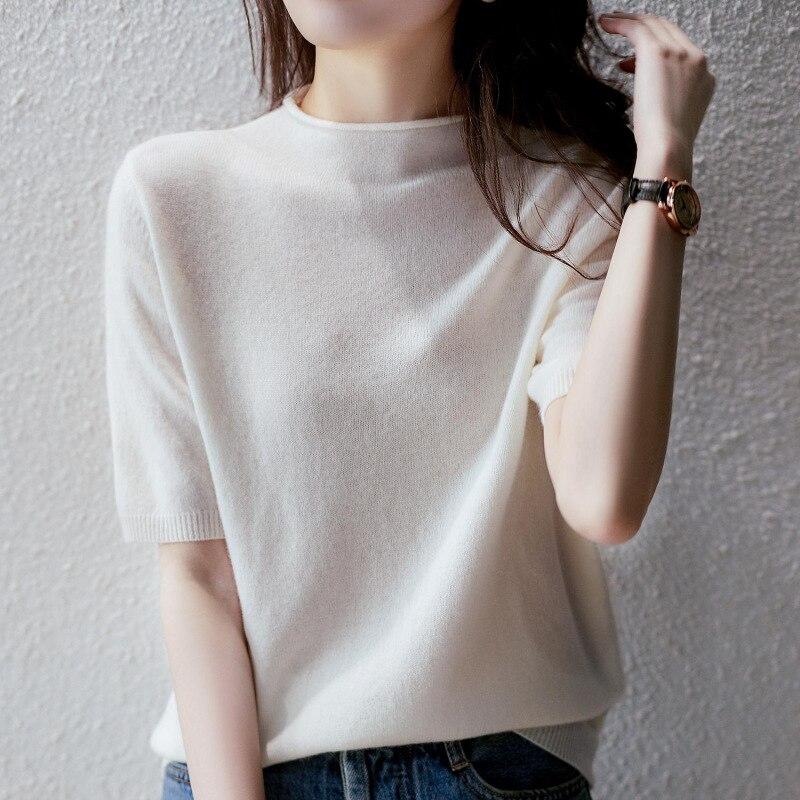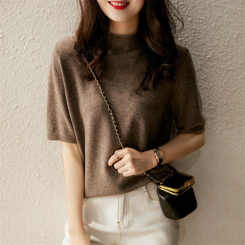 2022 весенне-осенний модный корейский вязаный женский свитер для отдыха, пуловеры с воротником-стойкой, базовые женские свитера, тонкий топ с круглым вырезом