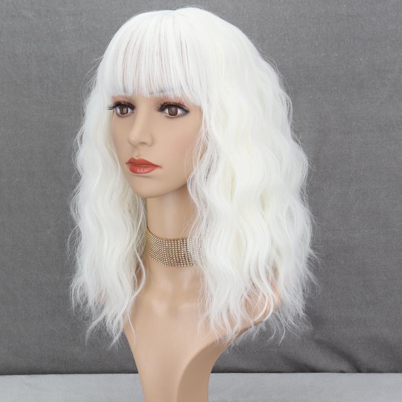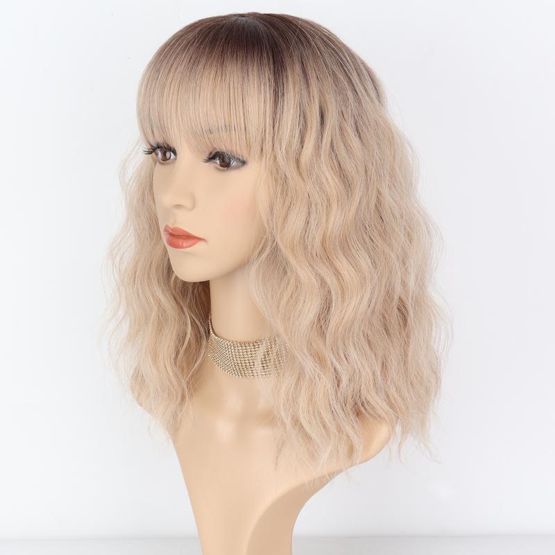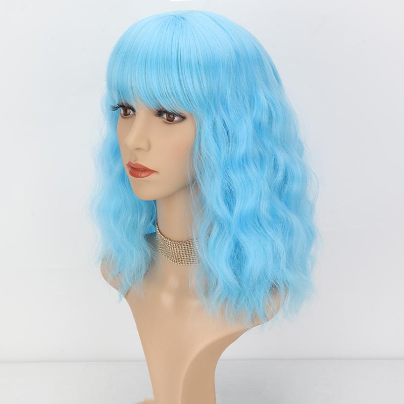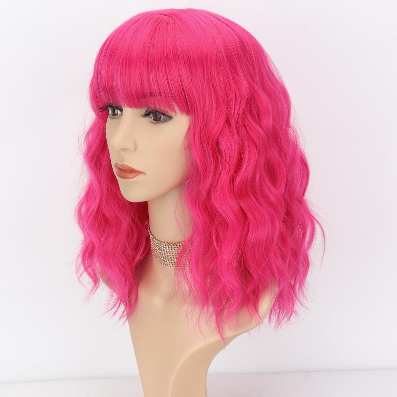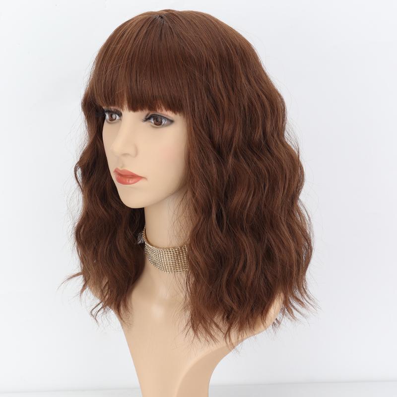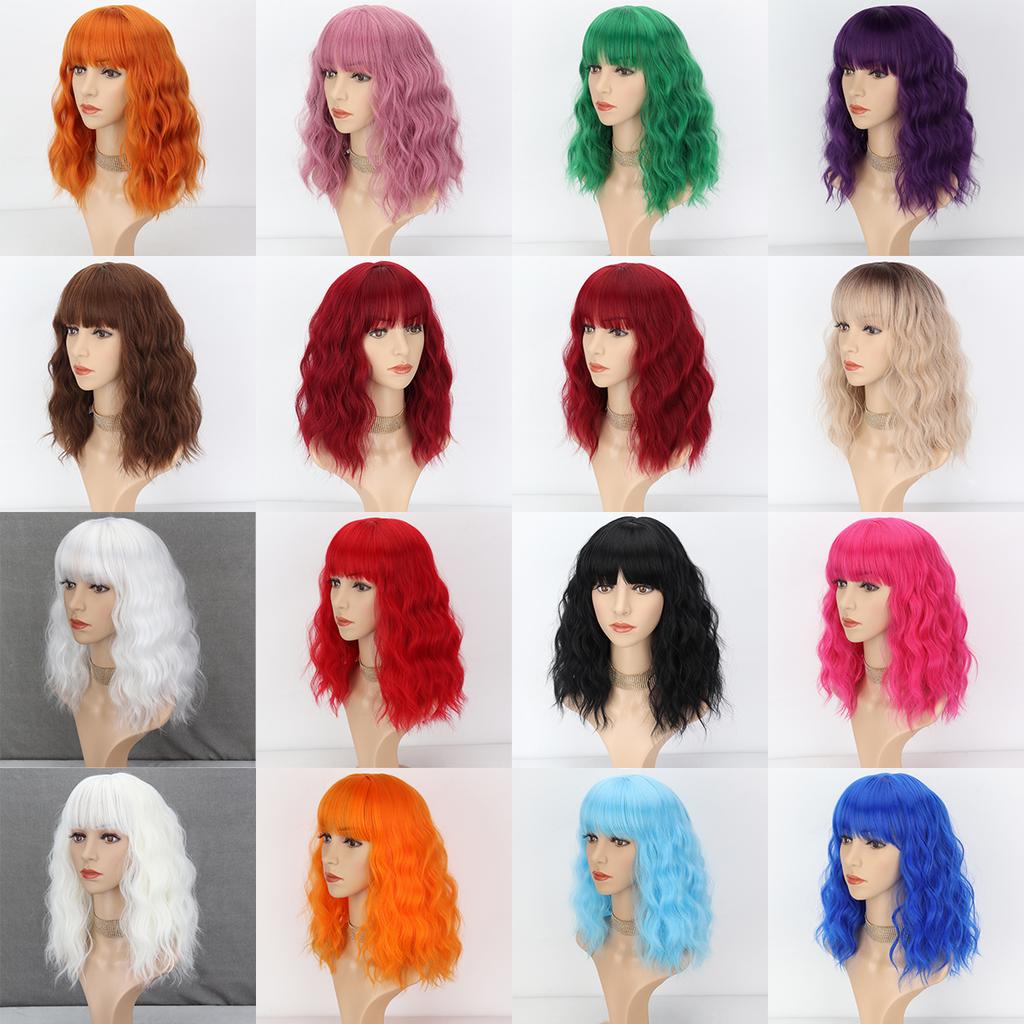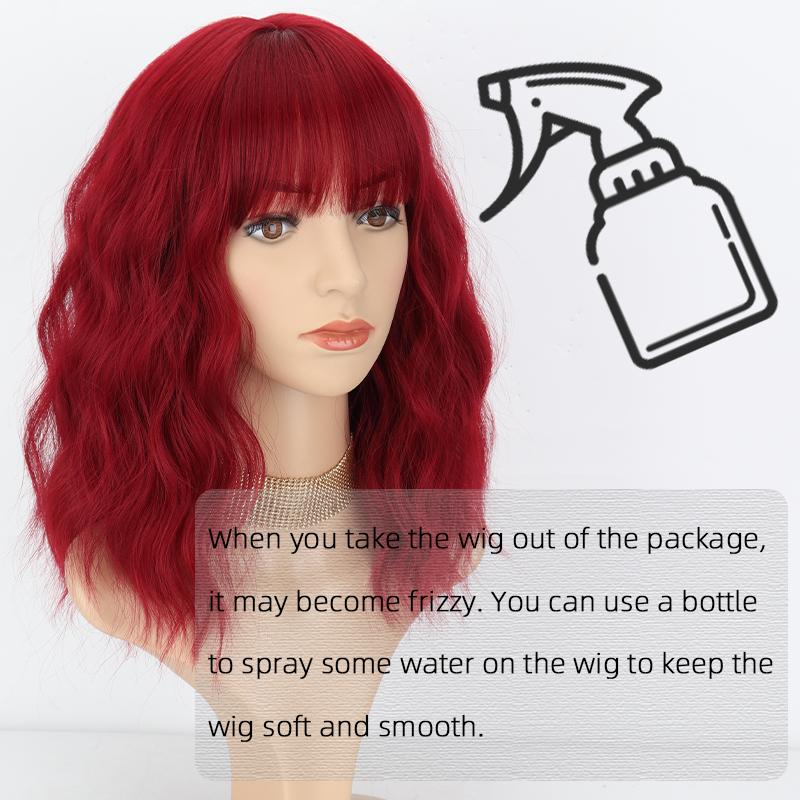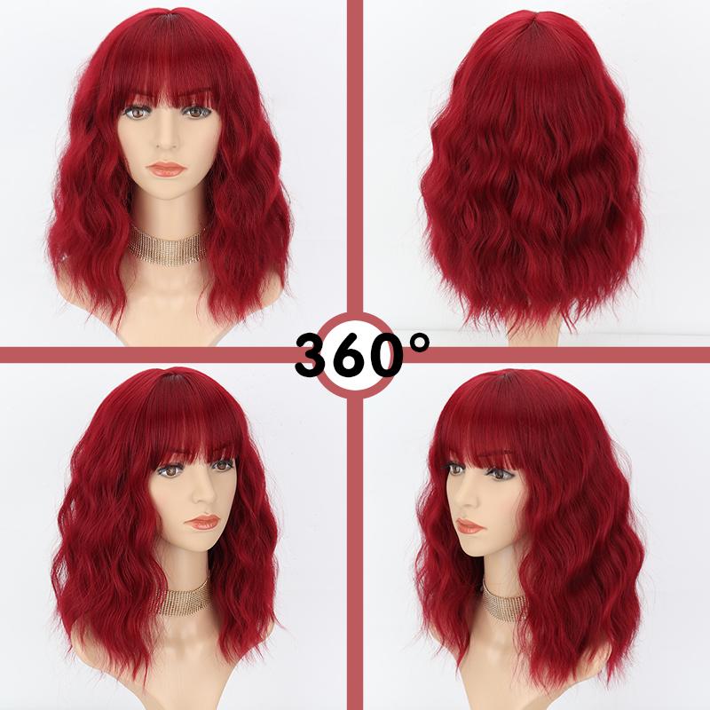 MISS WIG Красное вино, натуральный волнистый парик длиной до плеч с челкой, синтетическое волокно, бордовый для косплея, повседневная одежда, короткий волнистый парик Боб