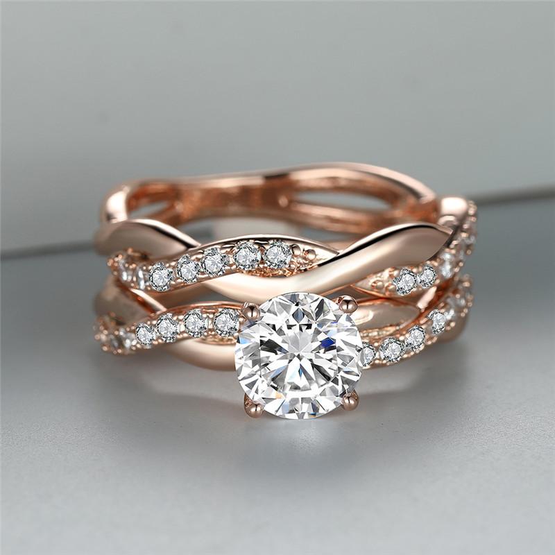 Женское изысканное кольцо цвета розового золота с поворотом круглой огранки из белого камня с цирконием CZ, комплект свадебных обручальных колец, обручальное кольцо, подарок на годовщину, размер 5-13 — купить товар онлайн с бесплатной доставкой по всему миру!
