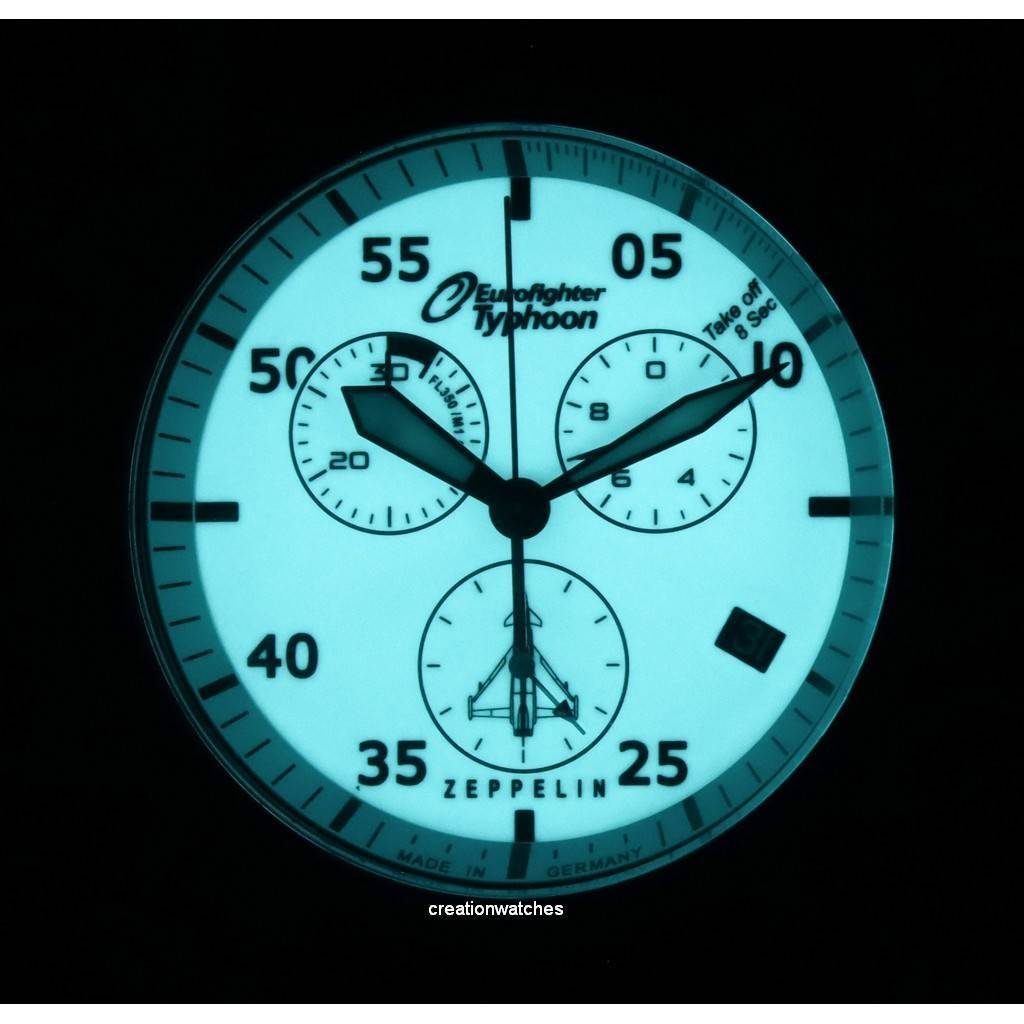 Zeppelin Eurofighter Chronograph Leather Strap Beige Dial Quartz 7298-5 72985 100M Мужские часы