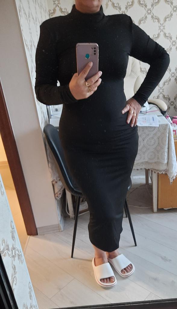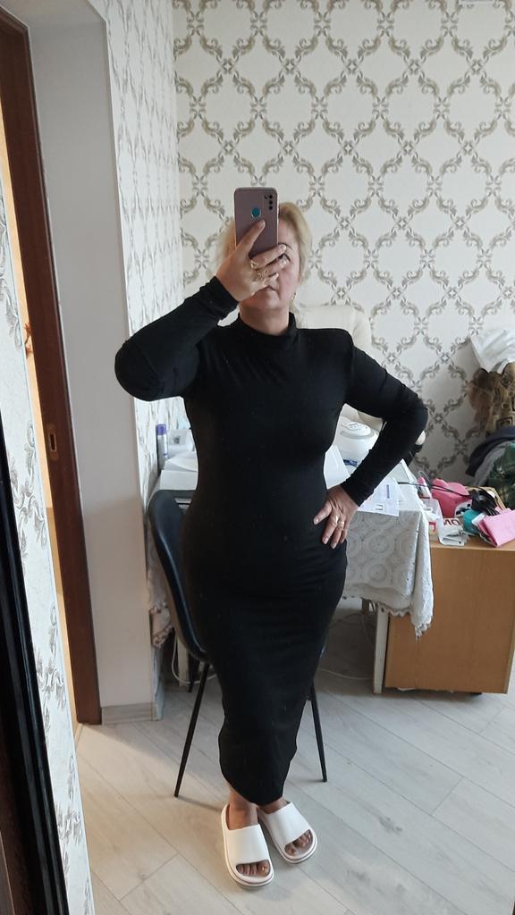 Платье красивое, с плечиками, материал как водолазка, мягенький, приятный к телу, только ходить не удобно, шаги маленькие надо делать...спасибо продавцу и joom