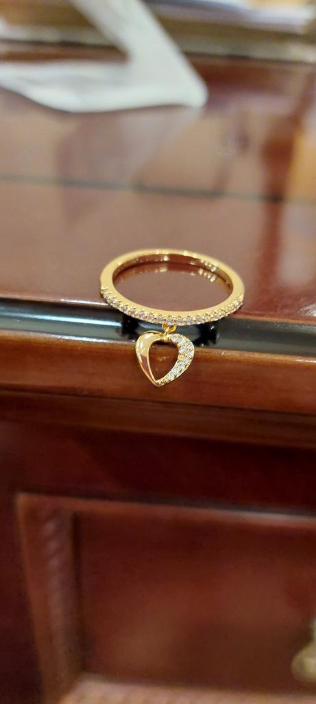 Очень стильное колечко с подвеской сердечком. Смотрится нежно и изящно. Мне нравится!