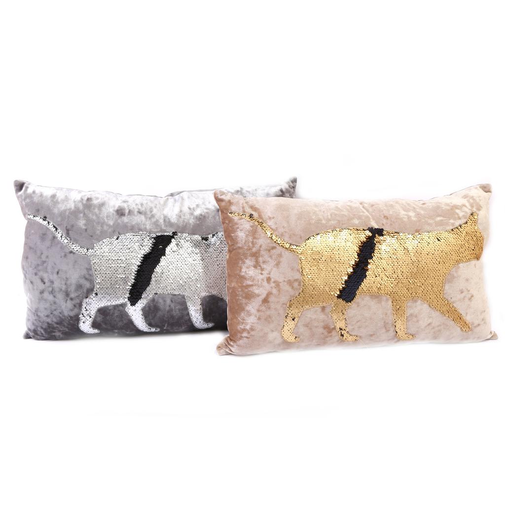Les Trésors De Lily [A1421] - Бархатная подушка «Кошки» с пайетками серебристо-серая - 50x30 см