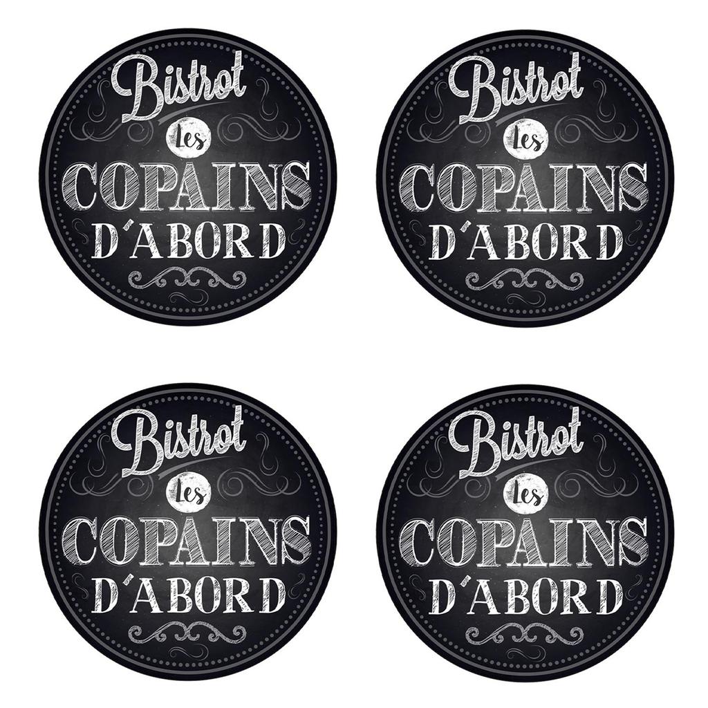 Les Trésors De Lily [A1627] — 4 серых подставки «Bistrot les Copains d’Abord» (дерево/пробка) - 95 мм