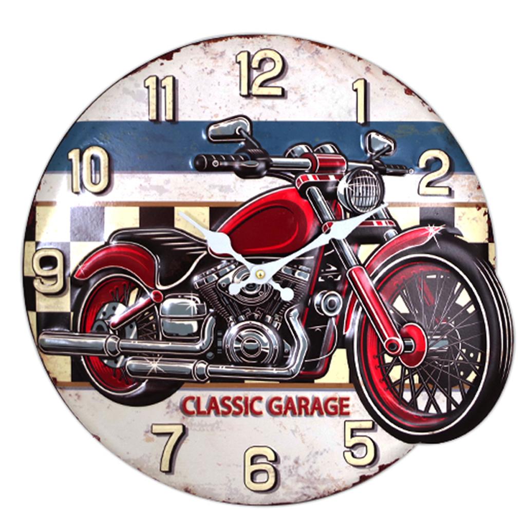 Les Trésors De Lily [A2513] — Металлические настенные часы Classic Garage, красные, синие, бежевые, винтажные, 40 см.