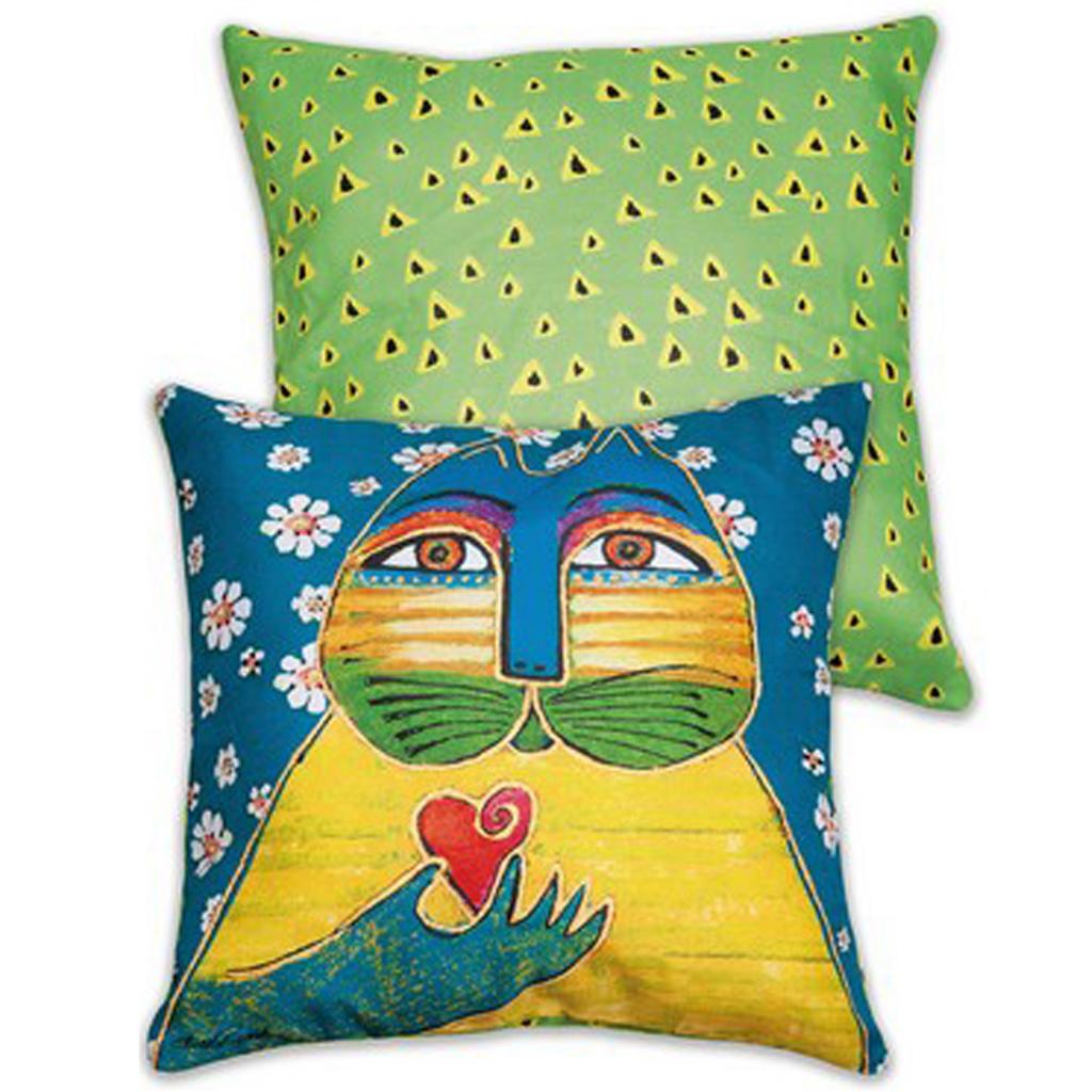 Laurel Burch [A2667] - Дизайнерская подушка 'Laurel Burch' сине-желтая (коты) - 45x45см