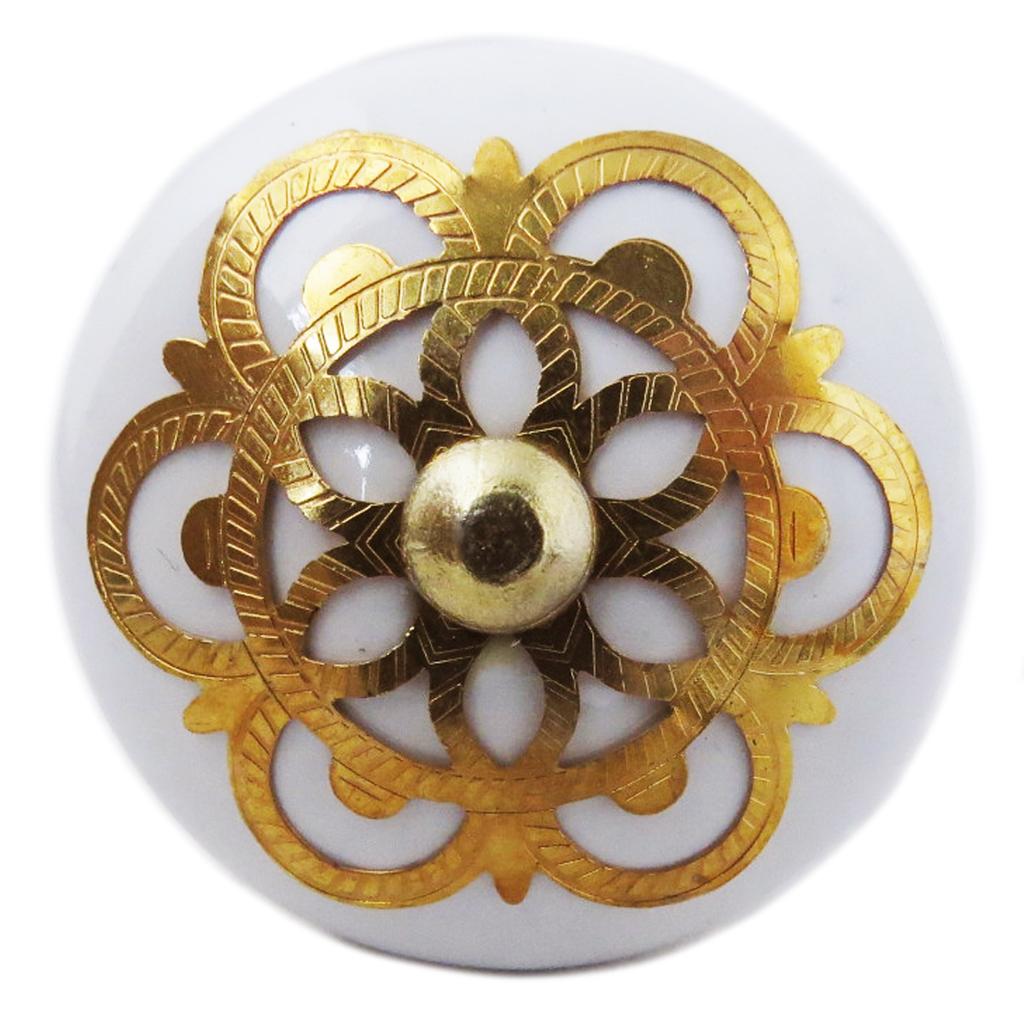 Les Trésors De Lily [A3120] - Ручка мебельная керамическая золотисто-белая «Бохо» - 60x40 мм