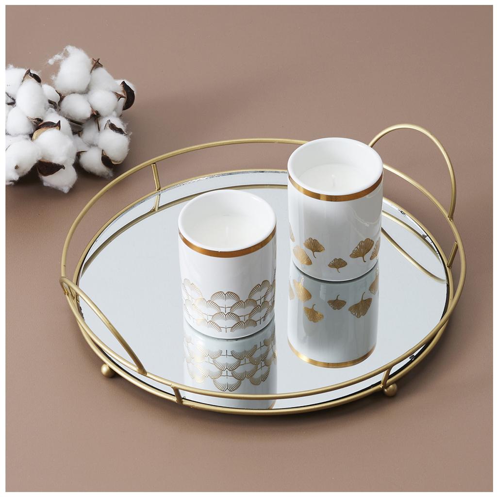 Les Trésors De Lily [A3494] - Ароматическая свеча керамическая 'Ginkgo Biloba' золотисто-белая - 9x8 см (белая орхидея)