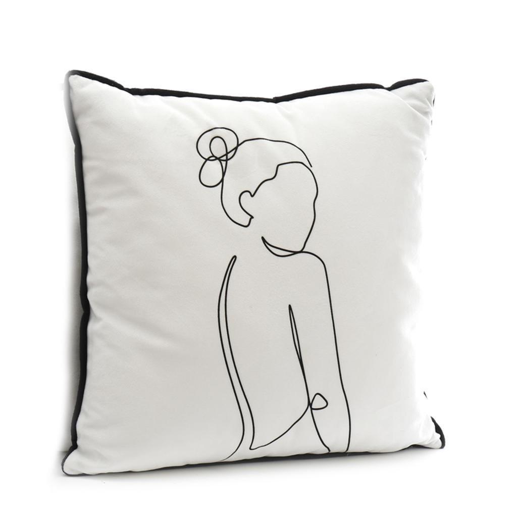 Les Trésors De Lily [A3698] - Бархатная подушка "Арти" черно-белая - 40х40 см (силуэт женщины)