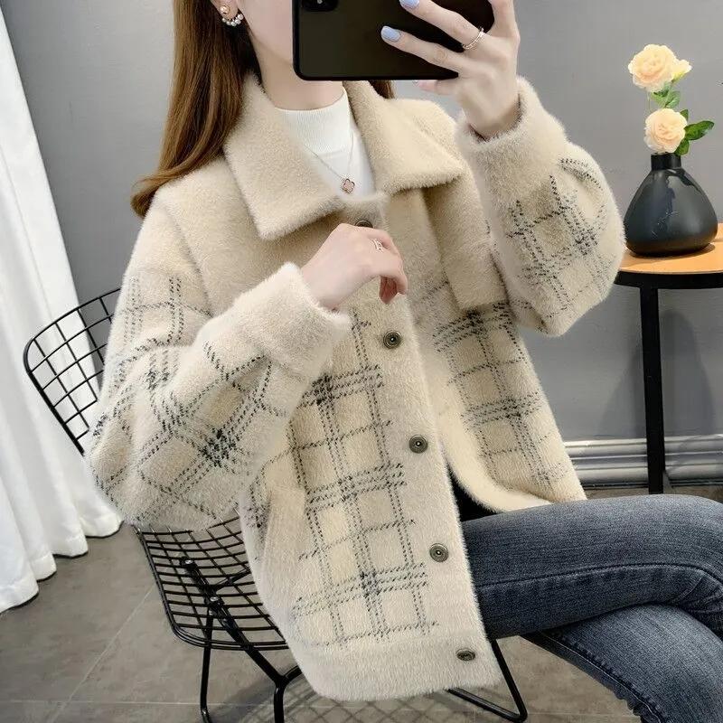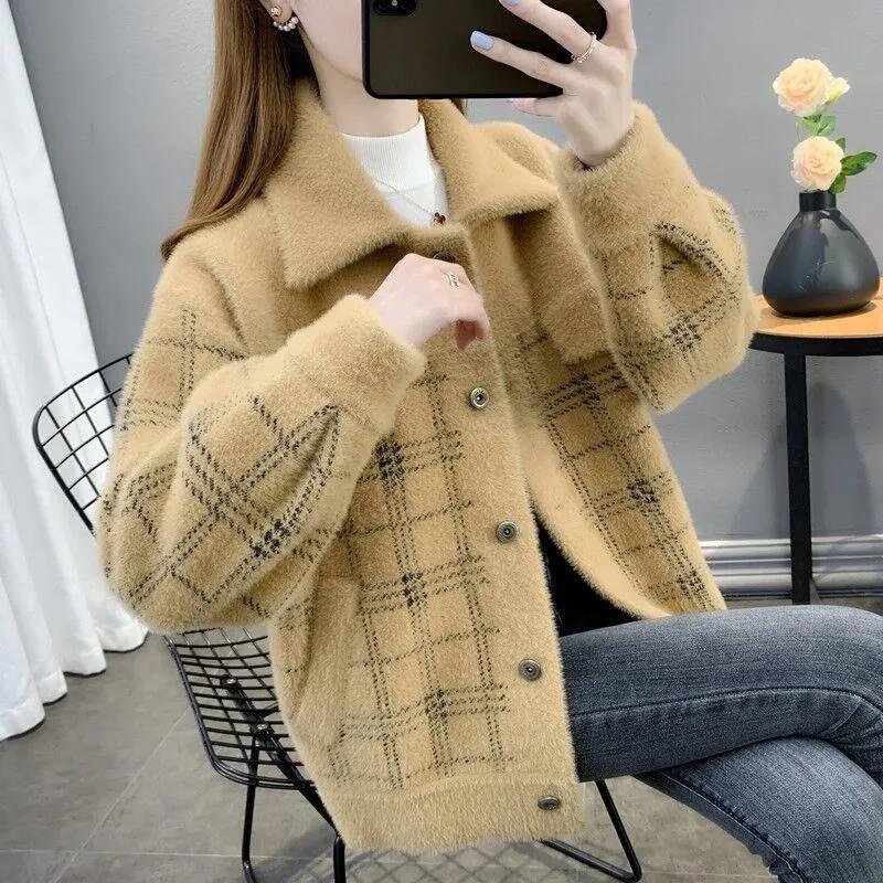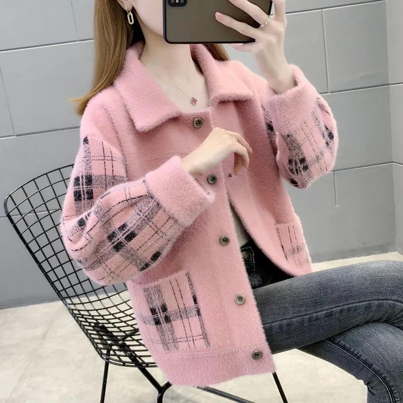 Бархатное пальто из искусственной норки, женское весенне-осеннее новое корейское пальто для мам, свитер из искусственной норки, женский кардиган на пуговицах