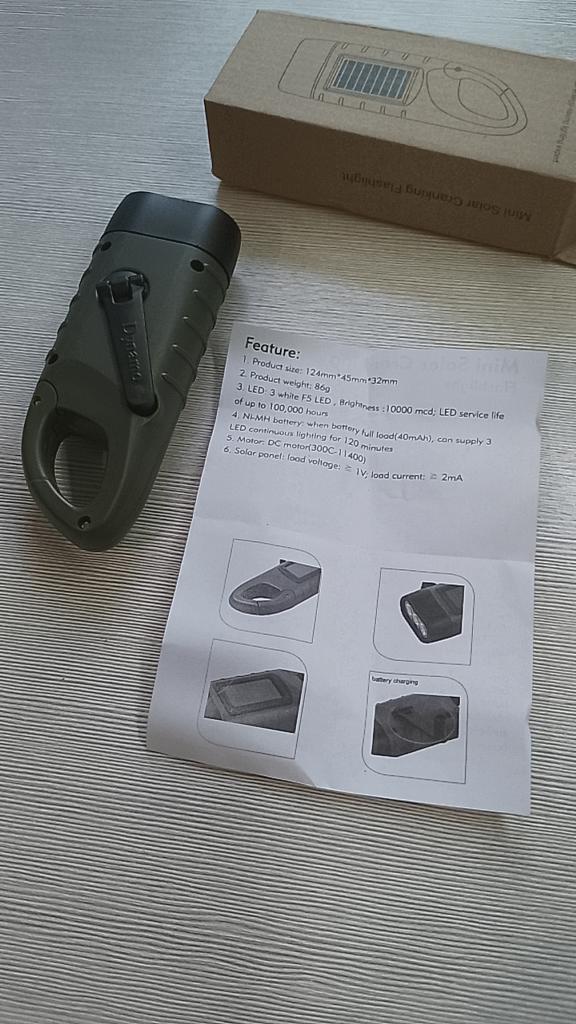 оказался меньше чем я ожидал, пластик но аккуратно собранный, светит слабо - как брелок хватит, что бы что не будь рассмотреть в палатке, или не вступить в лужу. Работает ли система заряда- я не знаю не было времени проверять. Надеюсь что поработает.