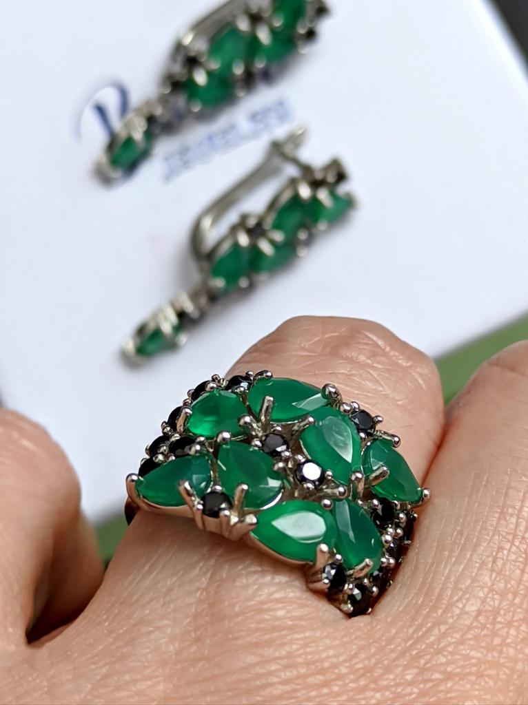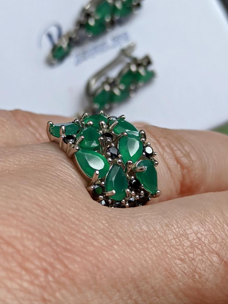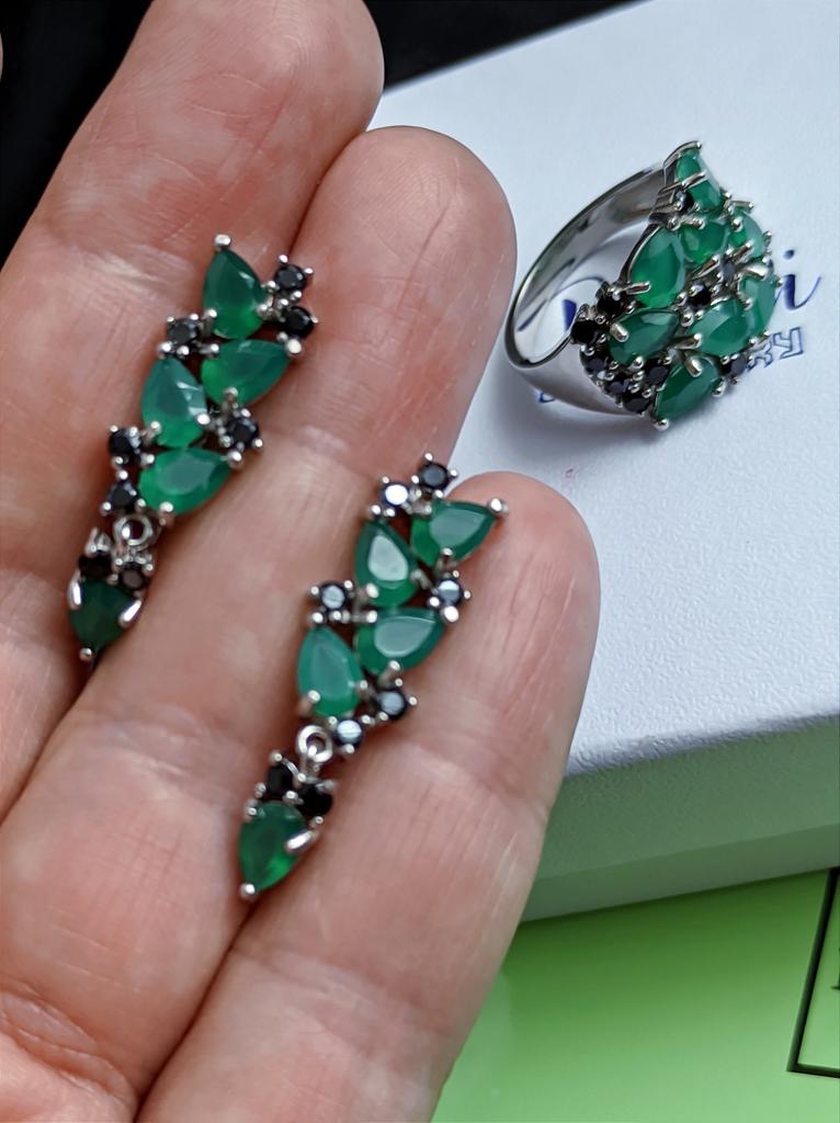 Наверное, это самый красивый набор украшений, который у меня был. 😍 Любуюсь им пару недель, повод выгулять пока не предоставился. На мой взгляд, это точно не повседневный вариант! Набор не дешевый. Но когда берёшь в руки эти изделия, понимаешь, что они стоят своей цены. Обычно продавцы обрабатывают фото, и когда ждёшь посылку — всегда немного переживаешь, что получишь не то, что ожидаешь. Но тут ситуация другая. Серьги и колечко вживую выглядят ещё лучше! Я на своих фотографиях тоже не смогла показать их красоту в полной мере. Набор пришёл в красивой подарочной коробочке. Поторопилась и не сделала фото в упаковке — украшения были затянуты в плёнку, во избежание свободного перемещения внутри коробки. Размер кольца немного маломерит по сравнению с другими моими китайскими кольцами, поэтому носить его буду на безымянном, а не среднем, как планировала. Продавец в описании уверяет, что сплав украшений — серебро 925 пробы, а камни — натуральный зелёный агат и чёрная шпинель. К сожалению, сертификат к набору не прилагается. Ещё один важный момент — серьги удобные. Я не ношу на ушах тяжёлые украшения, а эти серёжки, несмотря на обилие камушков, уши не оттягивают. Что сказать… На эту красоту нужно смотреть, а не рассказывать о ней. 💗 Если решитесь на покупку — в эти дни набор продаётся с хорошей скидкой. Украшения отлично подойдут в качестве подарка! В фирменном китайском магазине ювелирных украшений Bolaijewelry скидки сохранятся до конца выходных. ⭐⭐⭐⭐⭐