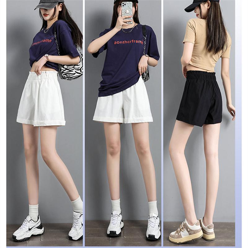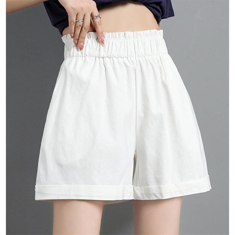 Летние шифоновые корейские женские шорты с высокой талией, женские винтажные короткие шорты в стиле Харадзюка с эластичными широкими штанинами, повседневные эластичные шорты