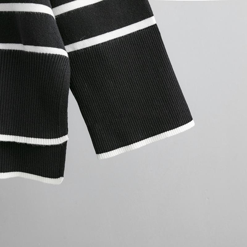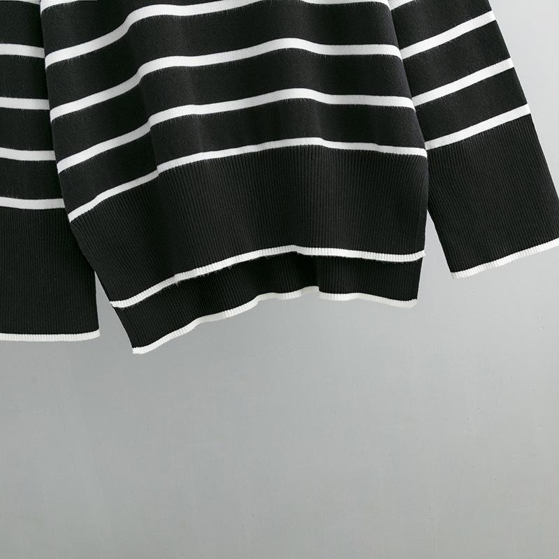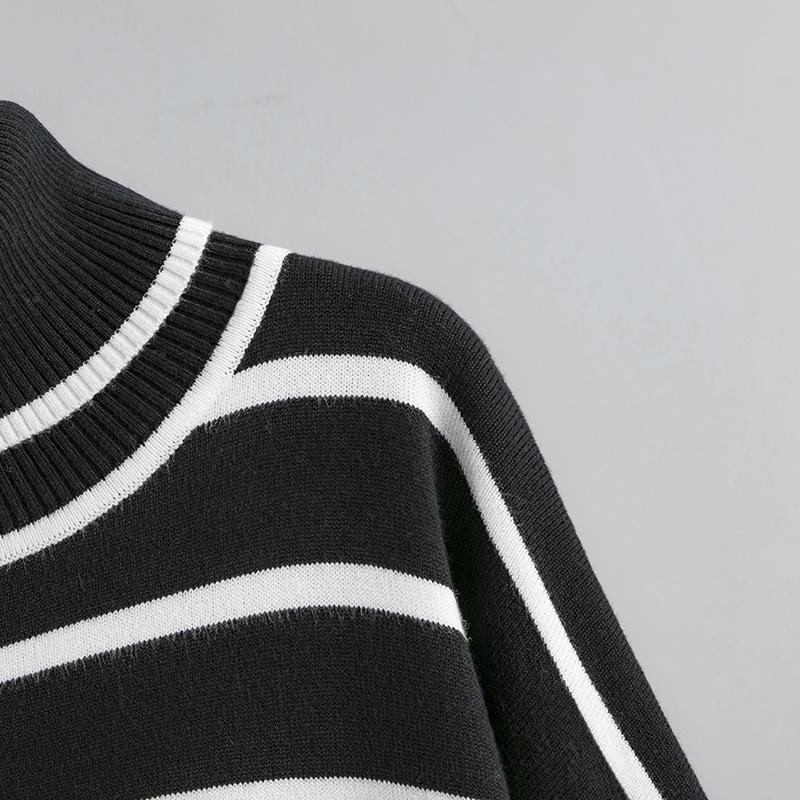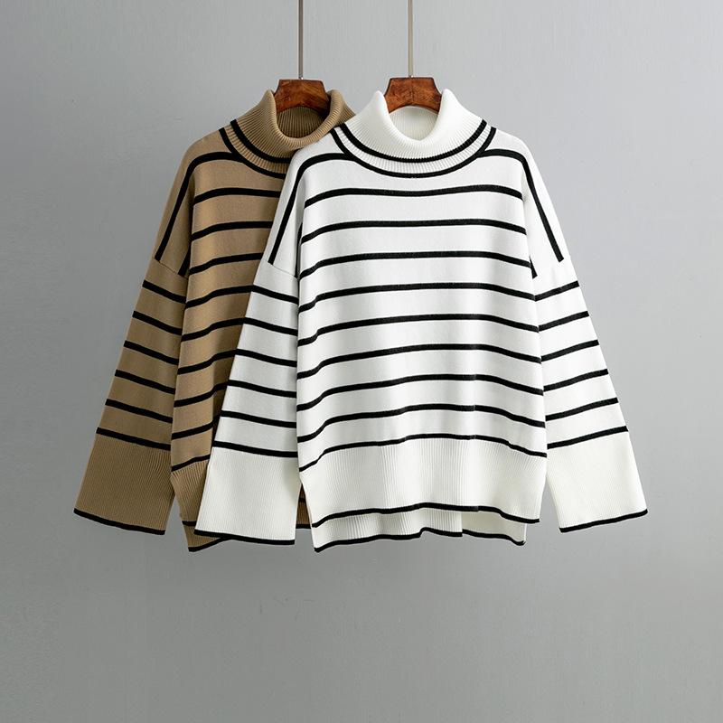 Женский осенне-зимний трикотаж, пуловер с контрастной полосой, свитер с высоким воротом и длинными рукавами