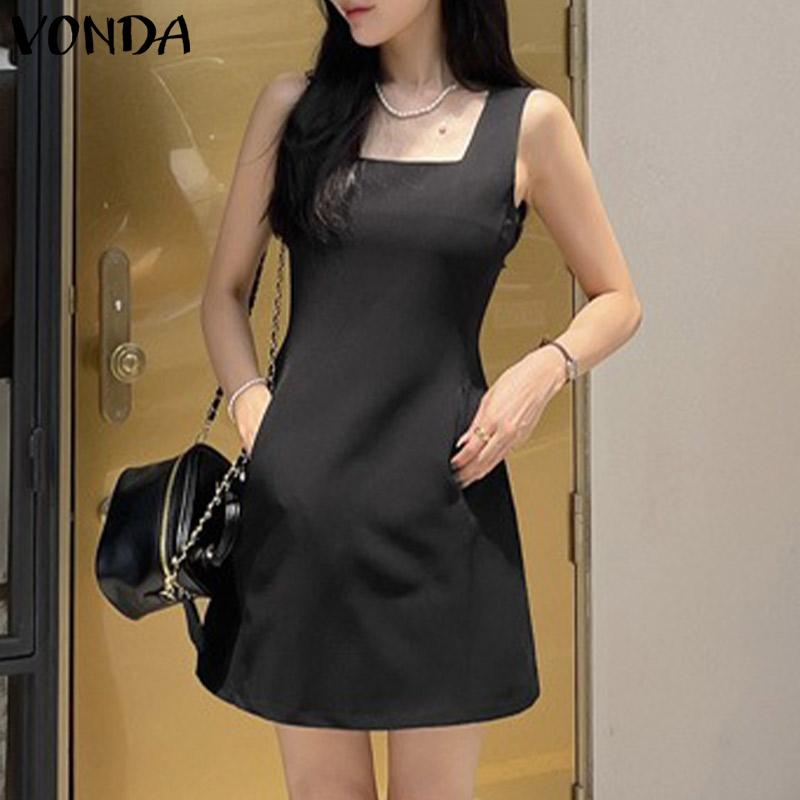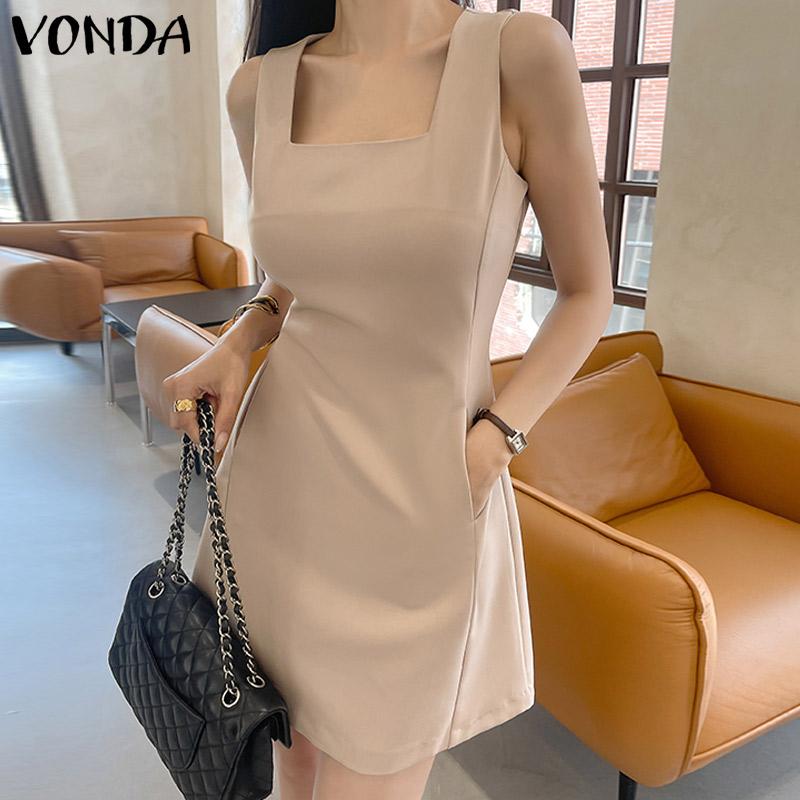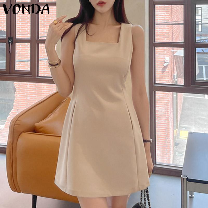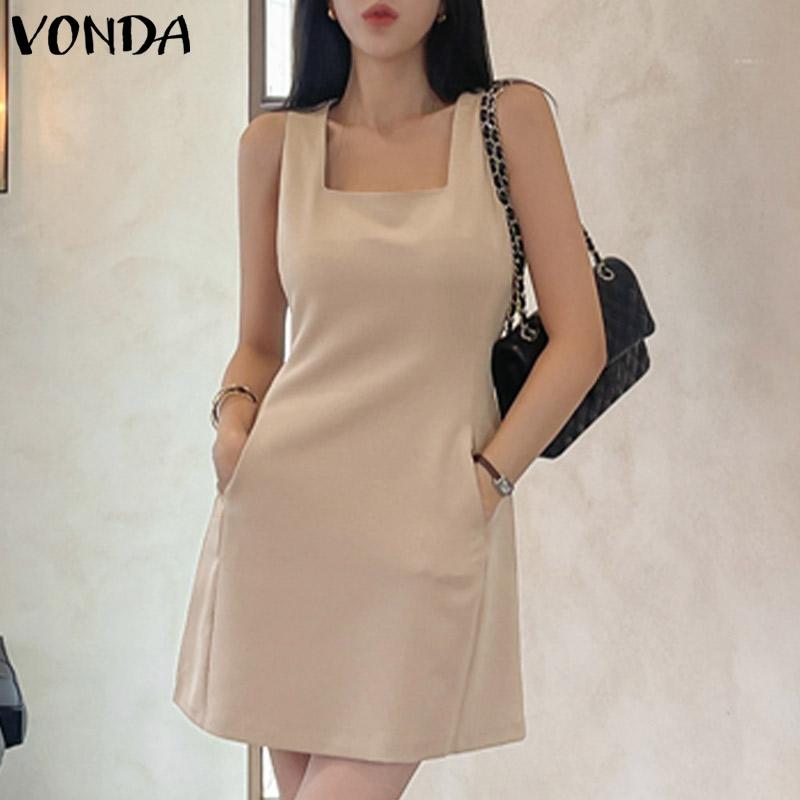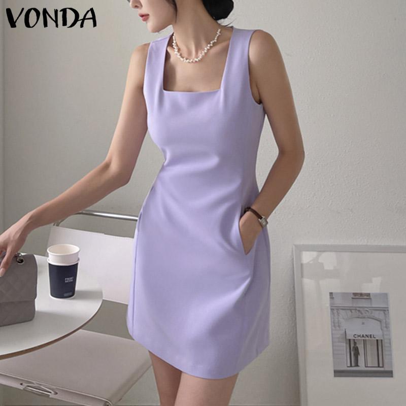 VONDA Летнее женское мини-платье без рукавов с квадратным воротником