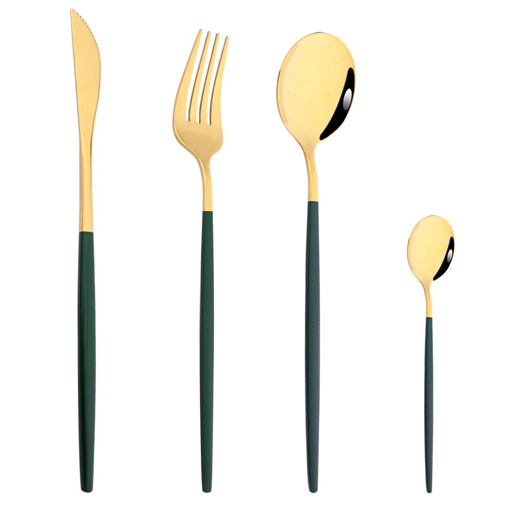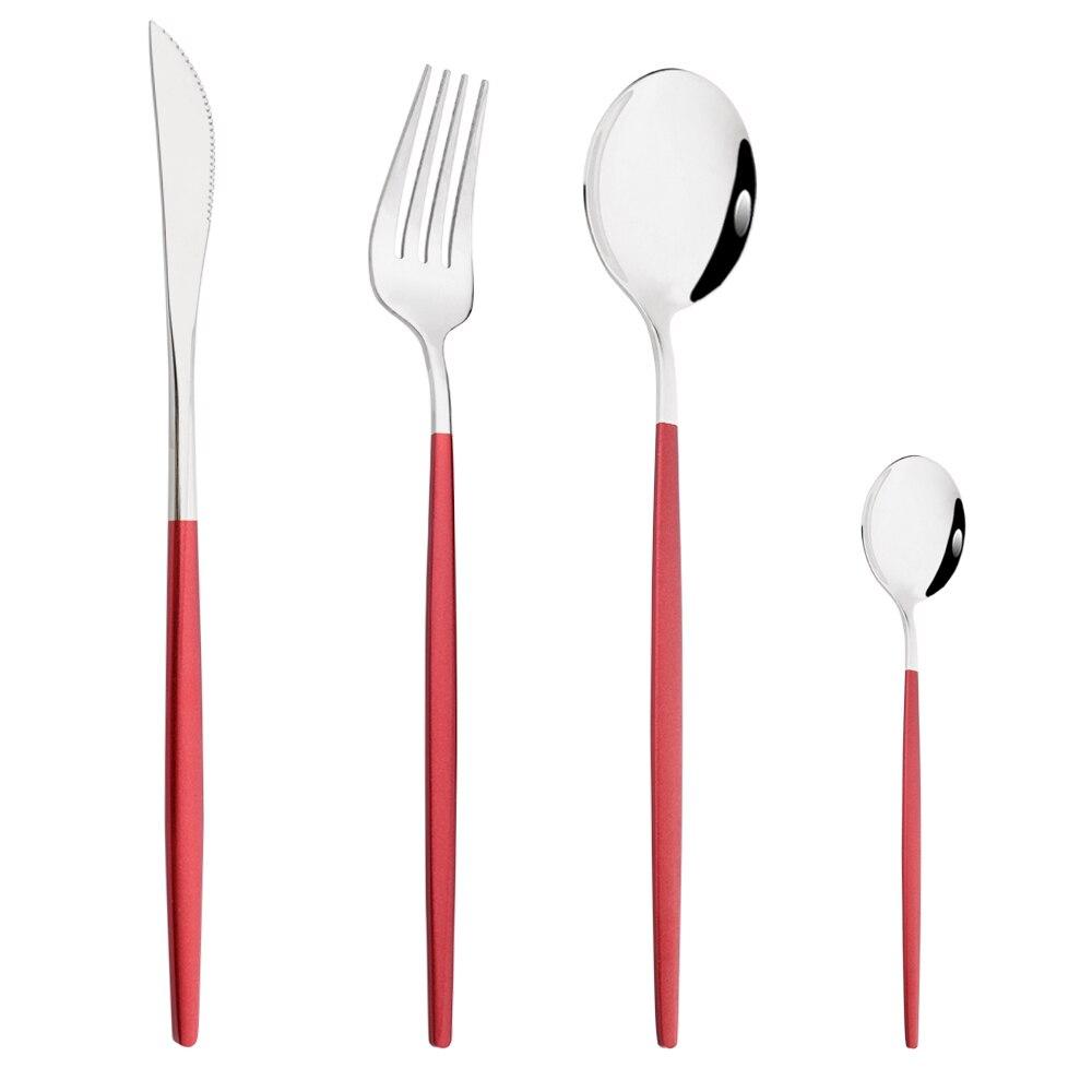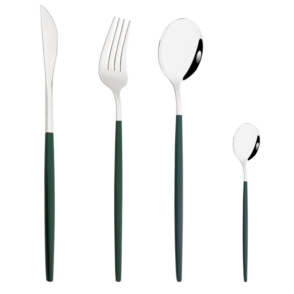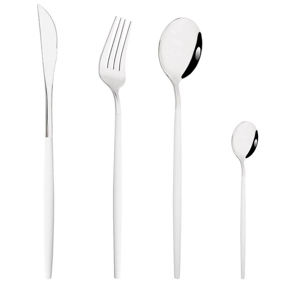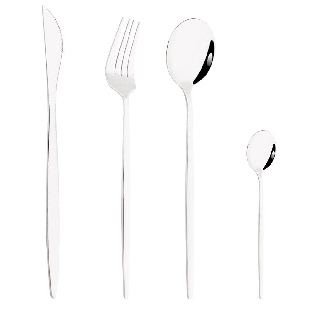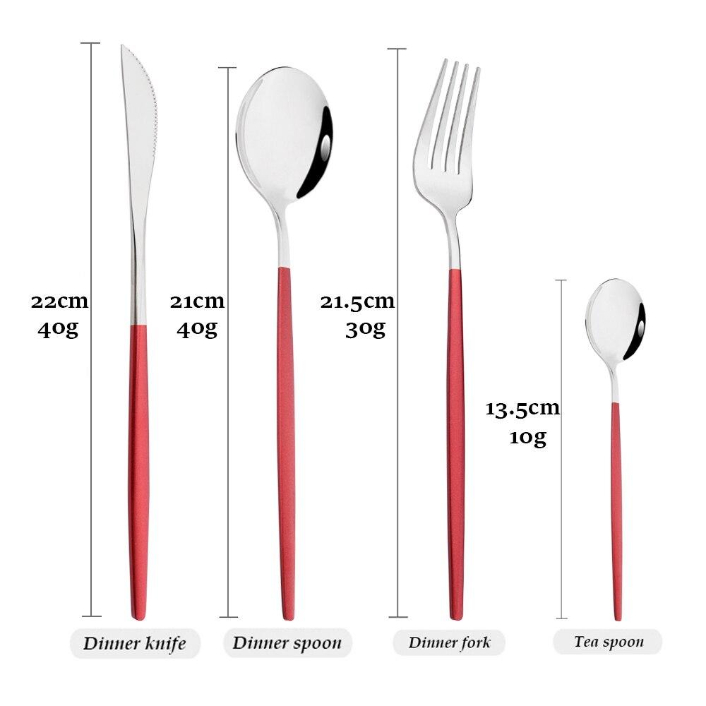 В пакет включено:1Pc Ужин Нож + 1Pc Столовая вилка + 1Pc Столовая ложка + 1Pc Чайная ложка.