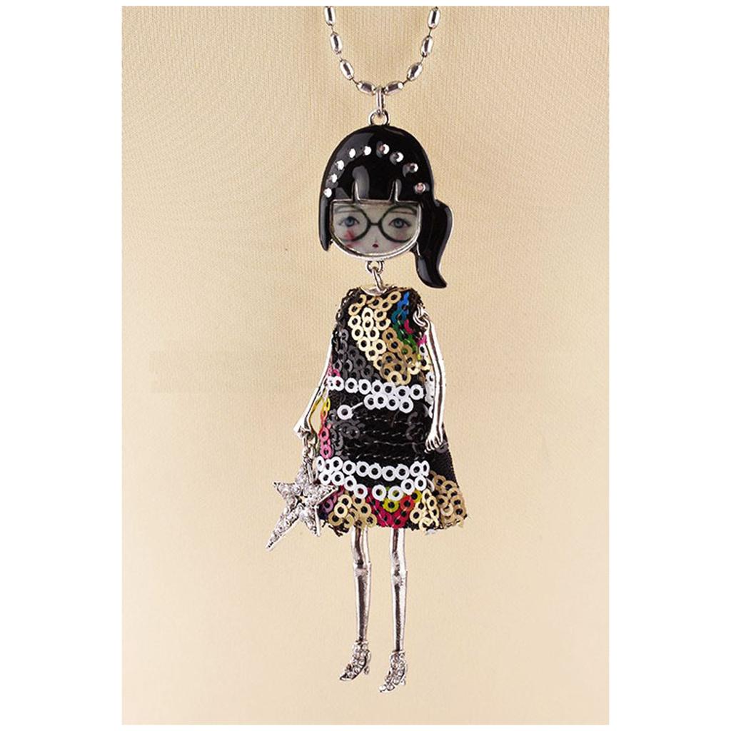 Les Trésors De Lily [R6278] - Дизайнерское длинное колье «Lilipoupettes». (шарнирная кукла) черный разноцветный - 80 см - 11х3 см