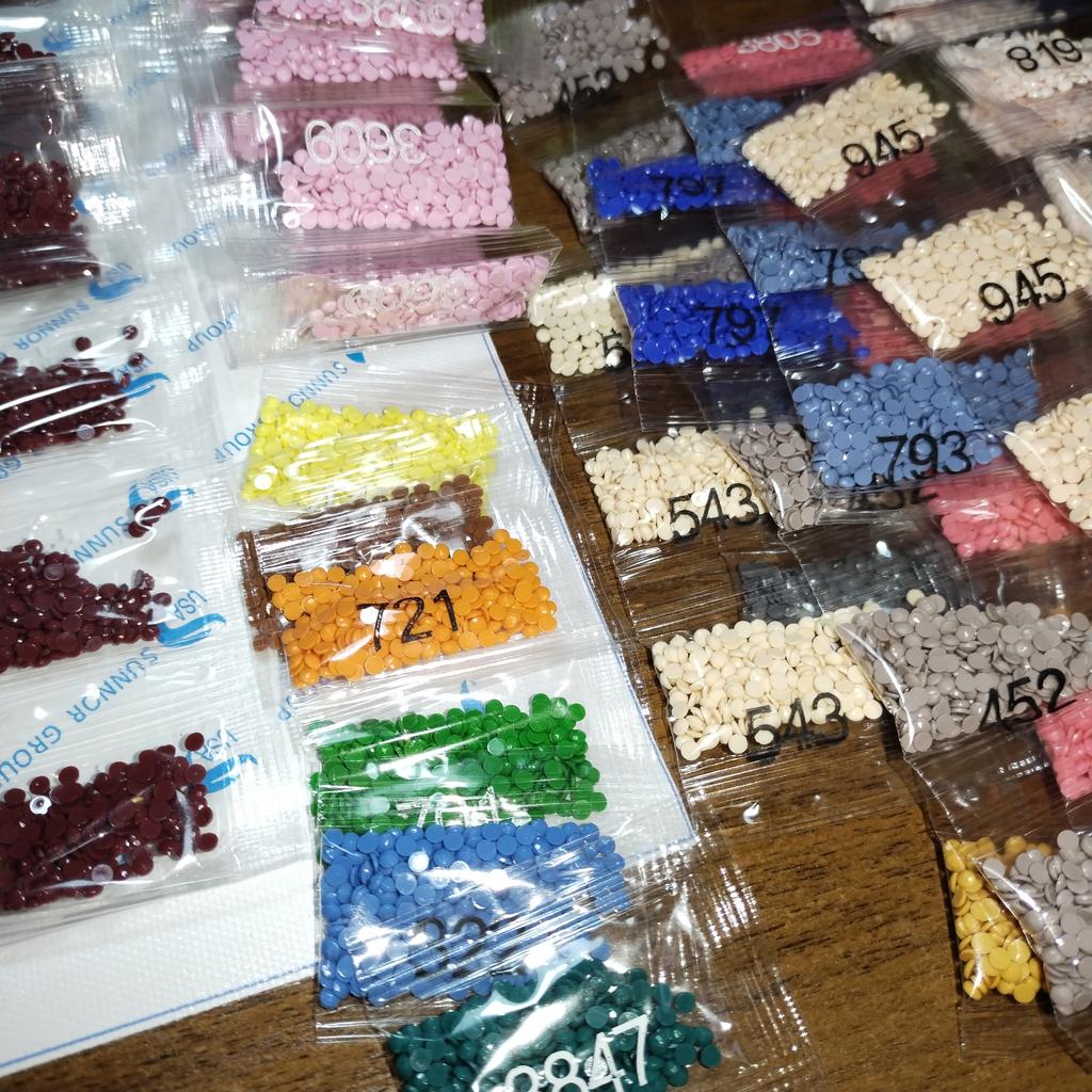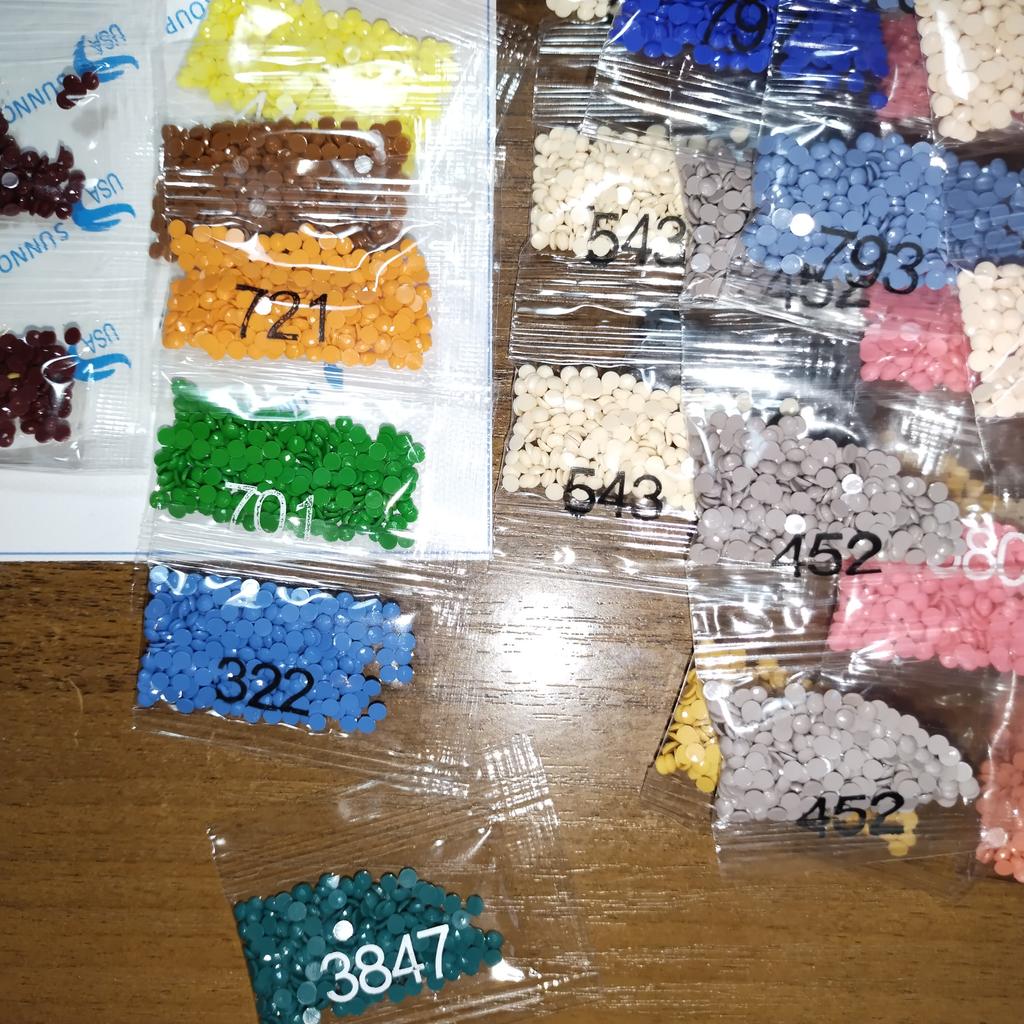 Получила, пока довольна. Цвета пока не проверяла. Как получу результат, так и отпишусь уже полностью со всеми подробностями. Снизила 1 балл, за то что холст приходит без валика и за то что стразы упакованы в пакетики, очень неудобно! Дополняю отзыв. ..фотоотчёт...цвета сочные,красивые, положишь 10 ЗИП пакетов...2 набора...есть отдельный лист, что очень удобно, с указанием цветов .приступаю к работе....как закончу ..дополню....