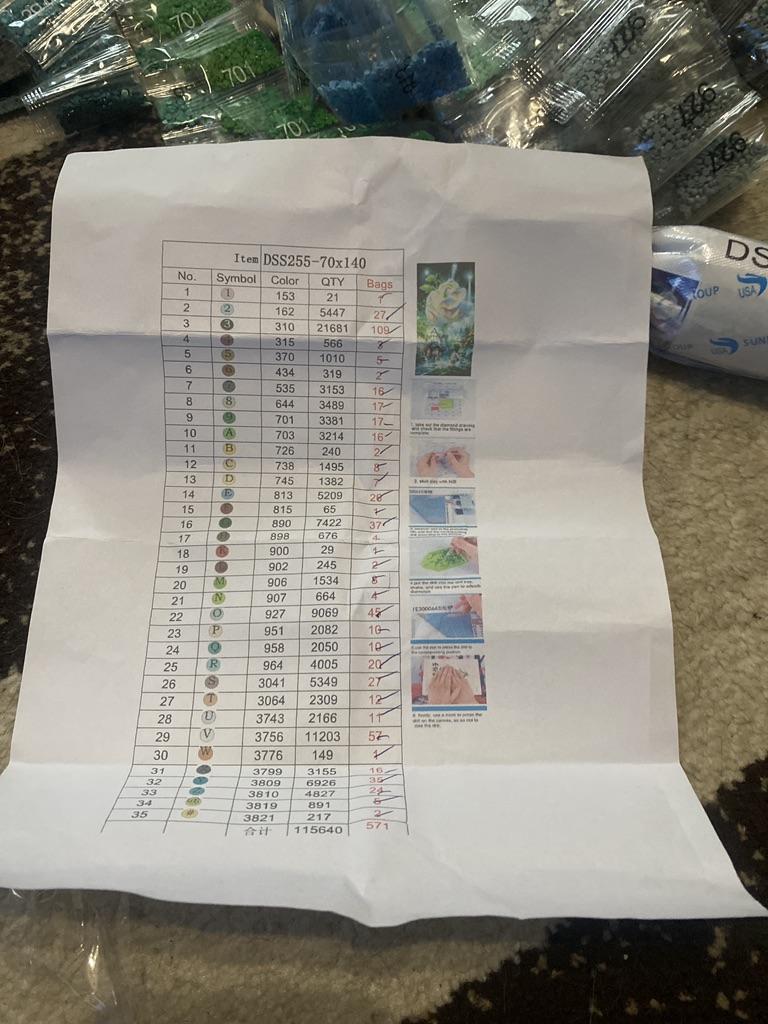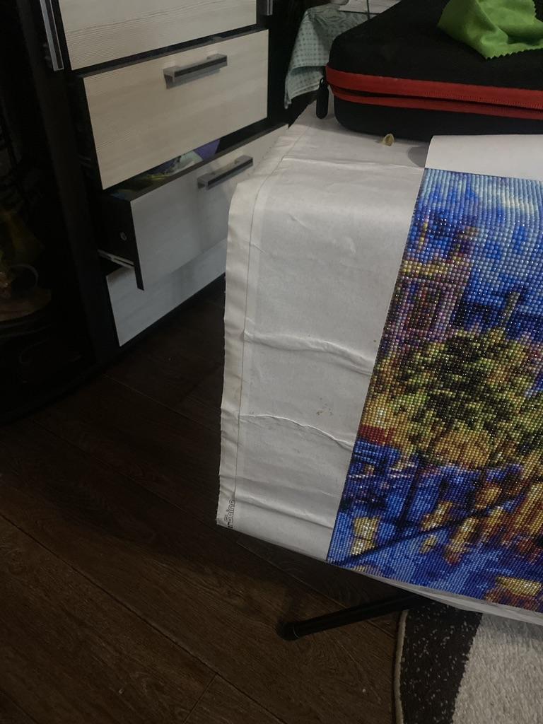 Я отправила фото недоделанной картины, у меня большая просьба к продавцу, с такими лентами намного удобнее делать картину, а так вам огромное спасибо, удобно очень смотреть на лист с цифрами, чем заглядывать в угол или снимать на телефон, материала дали достаточно много, как сделаю, обязательно дополню отзыв! У вас очень прекрасные картины фентази, думаю, я на этом не остановлюсь,и пришла картина гораздо раньше, чем я ожидала!!! С наступающим Новым годом! Еще раз спасибо!!!
