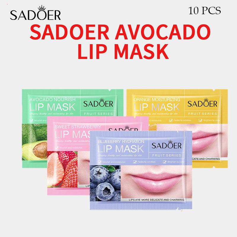 10 шт., маска для губ SADOER с авокадо, черникой и апельсином, увлажняющая и питательная фруктовая маска для губ