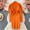 Тонкое облегающее платье на бретельках, комплект из 2 предметов, женский костюм, осенний корейский воротник-стойка, короткие пуловеры с длинными рукавами, повседневный трикотаж