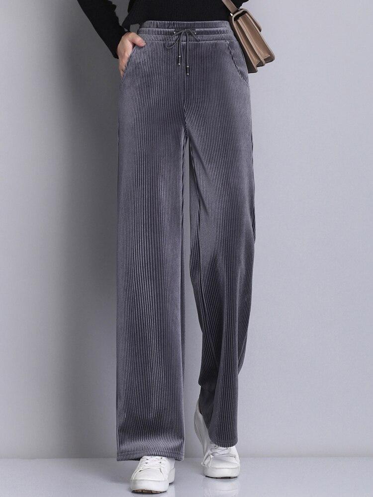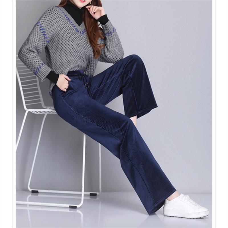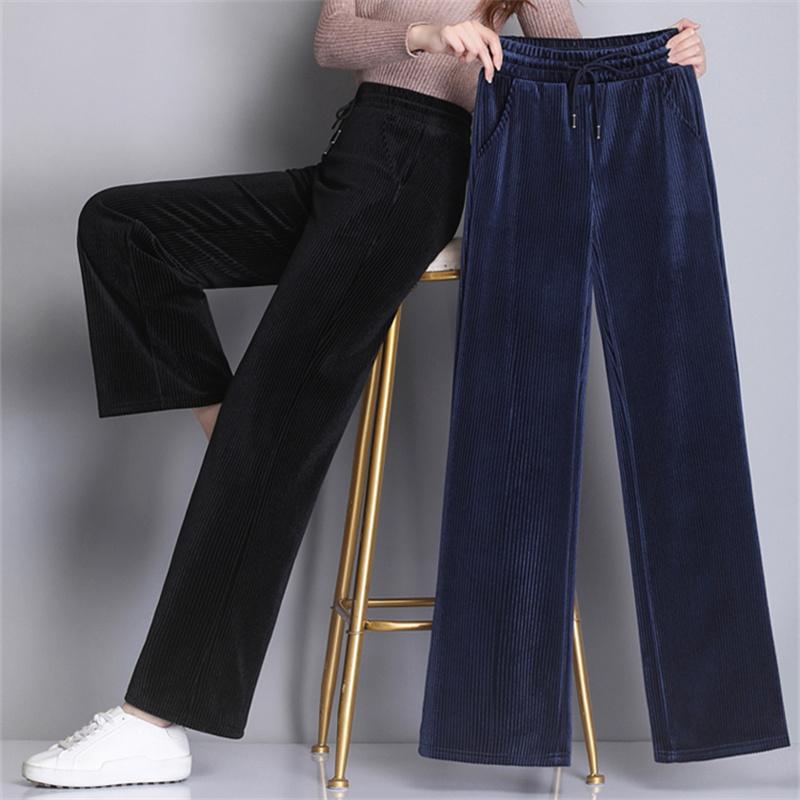 2022 зимние повседневные брюки полной длины, вельветовые широкие брюки, женские элегантные брюки с эластичной резинкой и высокой талией, уличная одежда на шнуровке