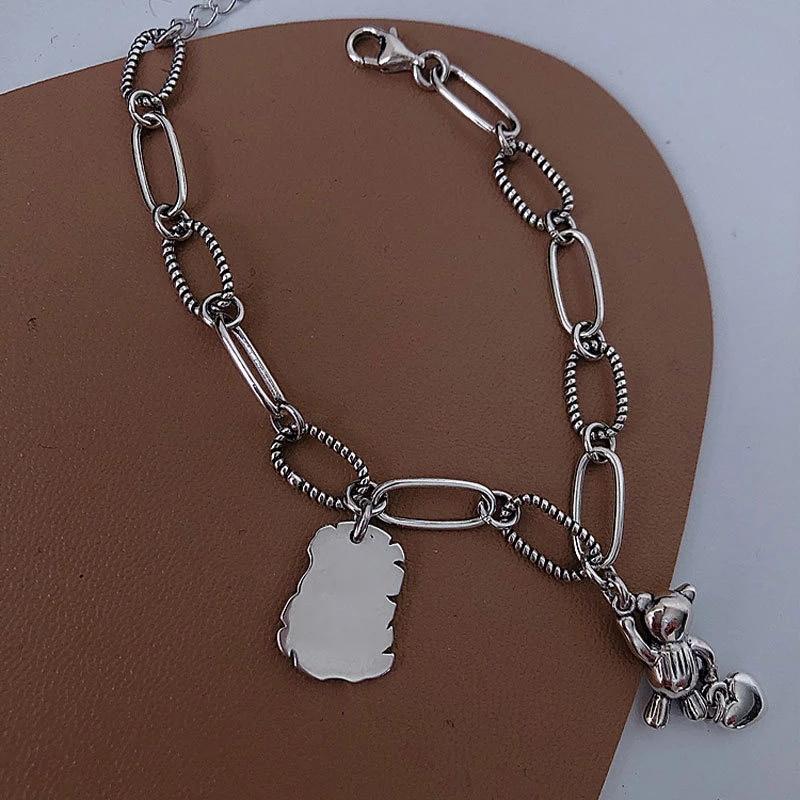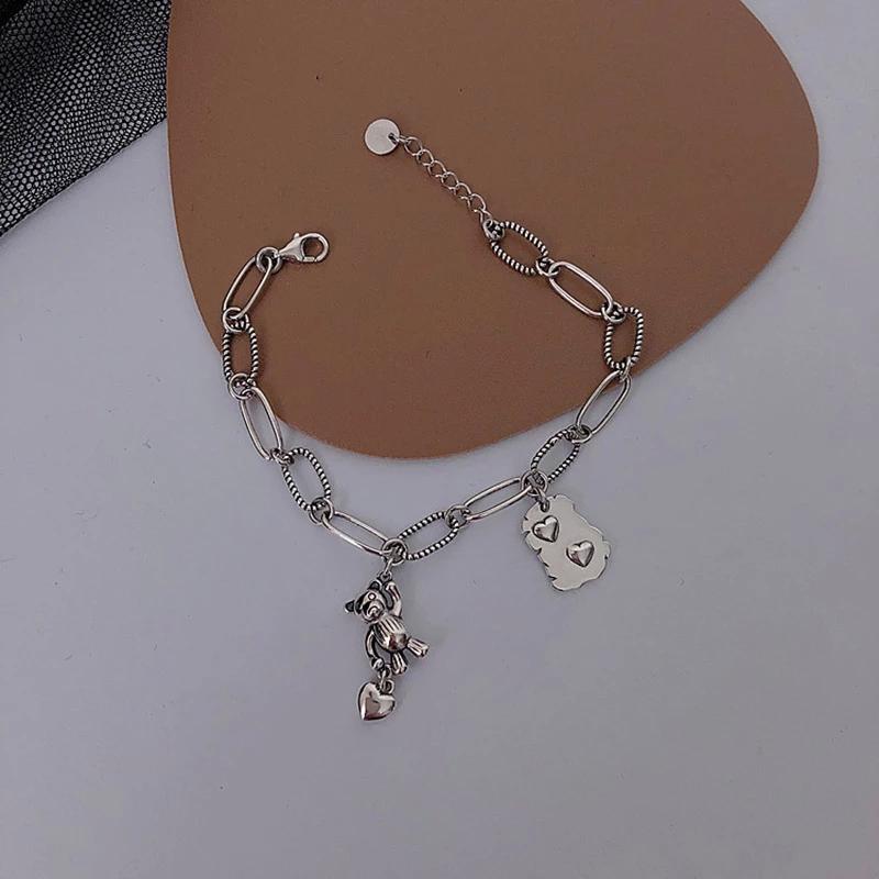 foxanry Браслет-штамп, новая мода, винтажный панк-медведь, кулон в виде сердца с сердечком, тайское серебро, вечерние ювелирные изделия, подарки