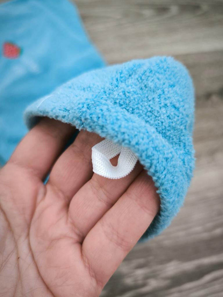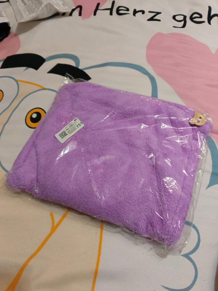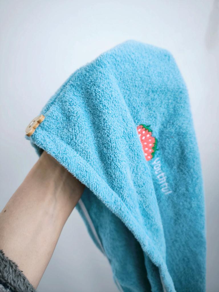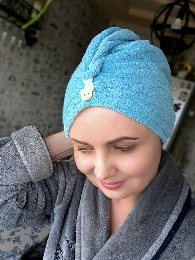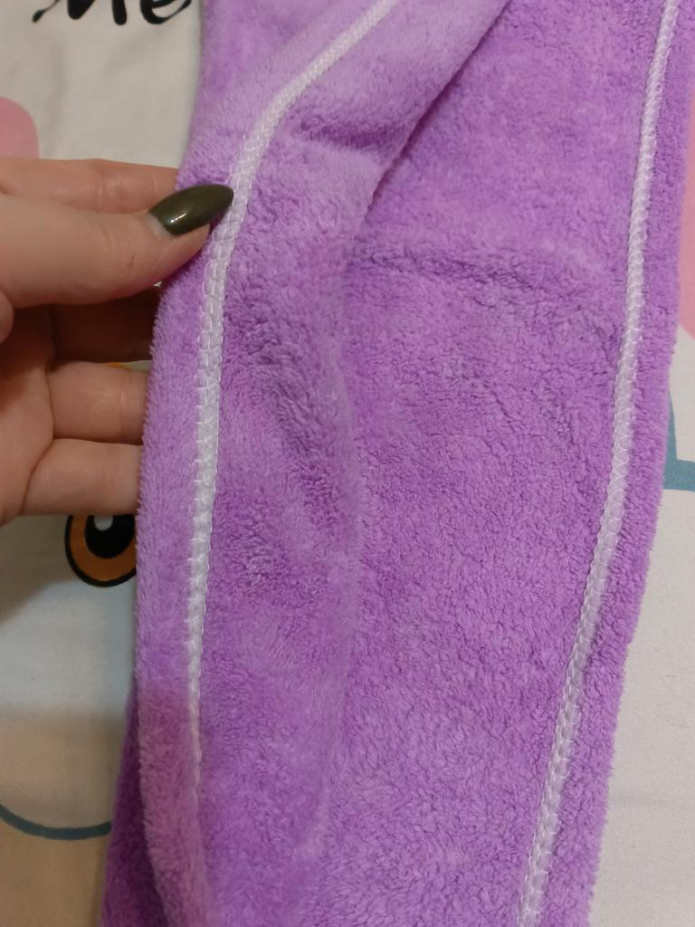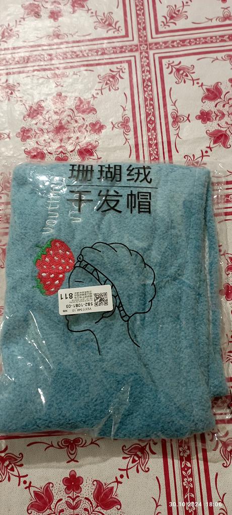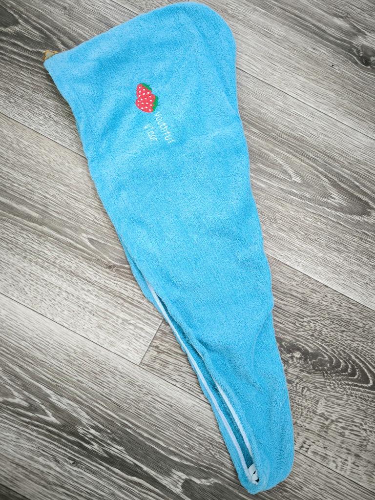Получила женское полотенце для волос. Первое заказала розового цвета, но отдала его дочке, а второе себе, голубого цвета. Разница в том, что на розовом полотенце было пришито две пуговицы в виде головы мишутки, а на голубом одна. С левой стороны вышиты две клубнички. Заказом довольна. Спасибо большое продавцу и Джуму за качественный товар и быструю доставку. Посылка в Украину шла две недели. Рекомендую.