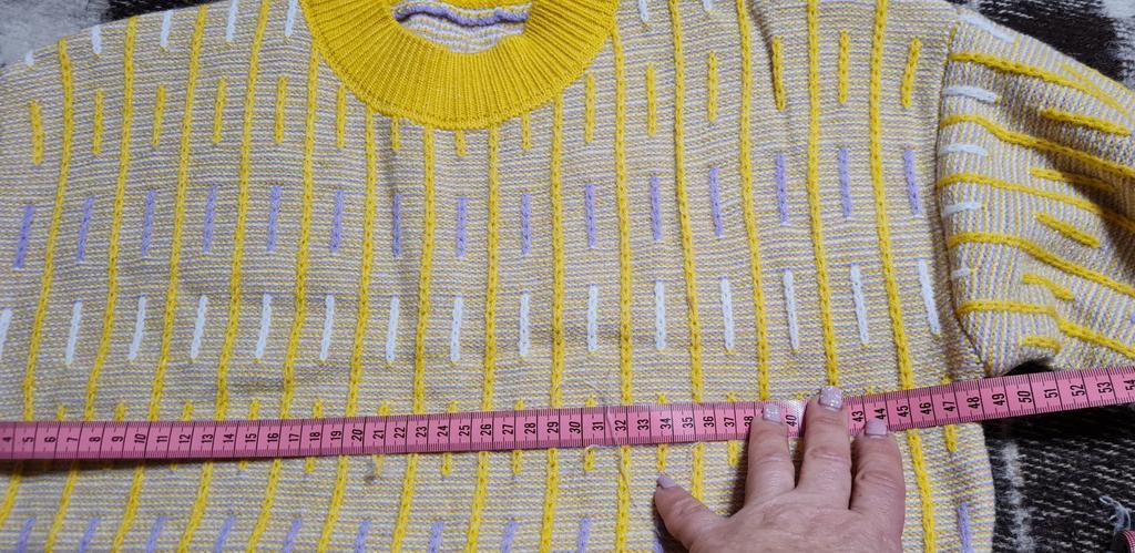 Свитерок сел идеально на 42-44размер. Вязка плотная, свитерок уютный.
