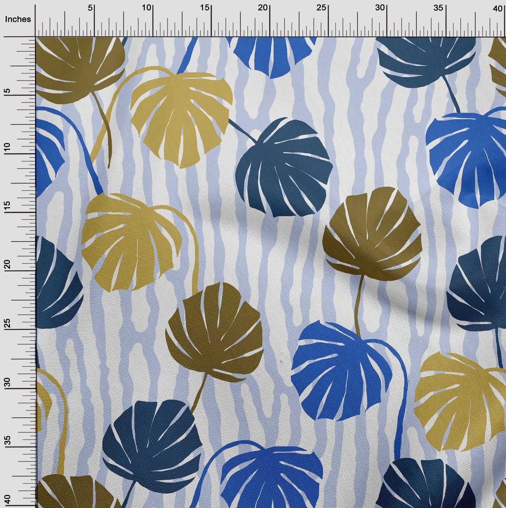 oneOone Хлопчатобумажная гибкая ткань пыльно-синего цвета с тропическим пальмовым листом и ломаными жирными линиями Материал платья Ткань с принтом Ткань в ярдах 40 дюймов