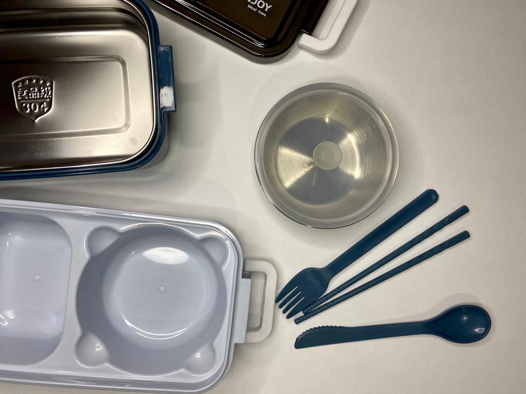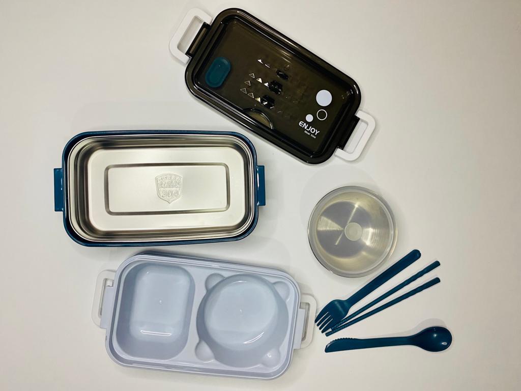 Ланч-бокс хороший. Если маркировки не врут, то этот пластик можно пихать в микроволновку. Мне нравится качество и в целом комплектация. Только приборы не очень удобные для меня, я привыкла к более узким и длинным. Но это дело привычки. Опять же, если маркировки правильные, то пластик безопасный для нагрева. Металлические чашки лёгкие, крышка от супницы в целом не пропускает жидкость, если сильно не трясти. Брала пару раз бульон на работу, ни разу пока казусов не было таких, чтобы что-то проливалось. Можно брать с собой хоть оба контейнера, хоть по одному. Очень удобно. Я довольна покупкой. К сожалению, фото только такое сейчас имеется.