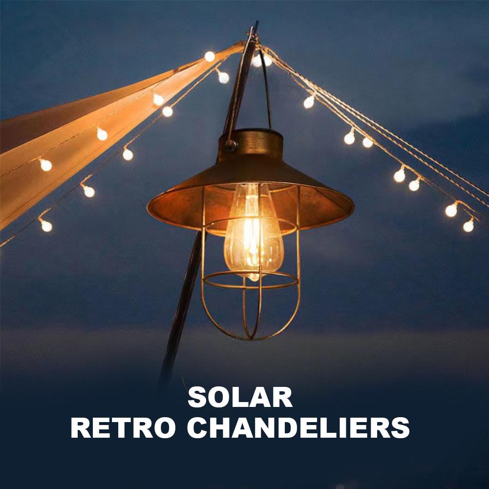 Solar Led Light Outdoor Solar Lamp Retro Camping Lantern Waterproof Night Light Portable Emergency Tent Chandelier Light
