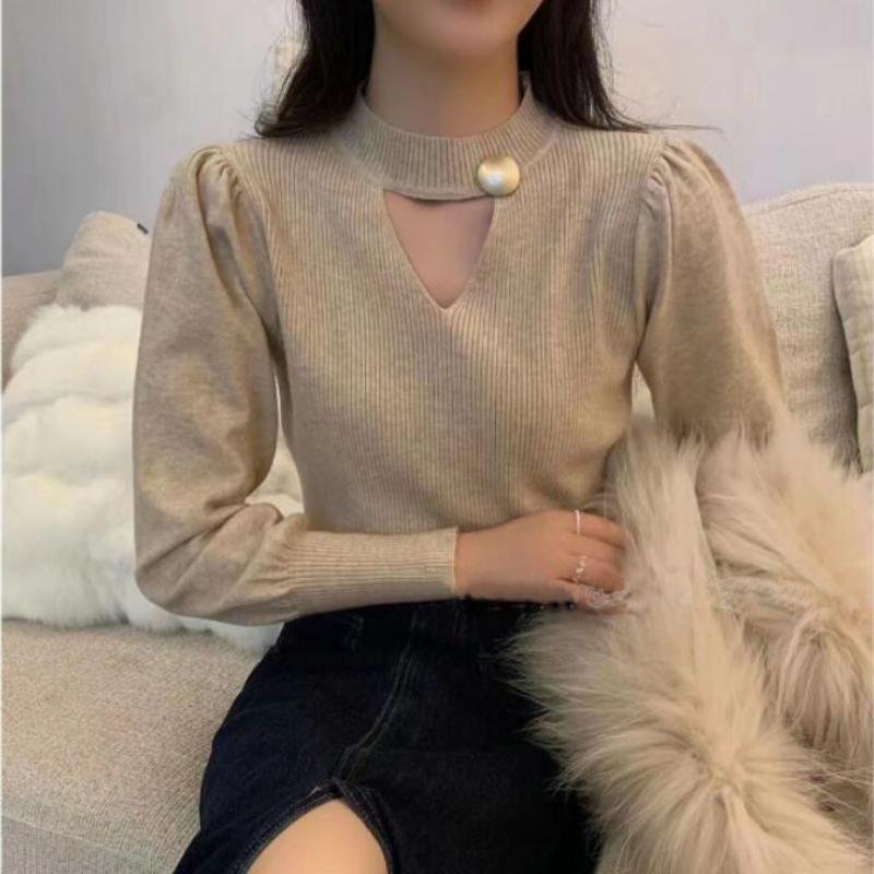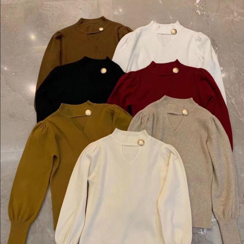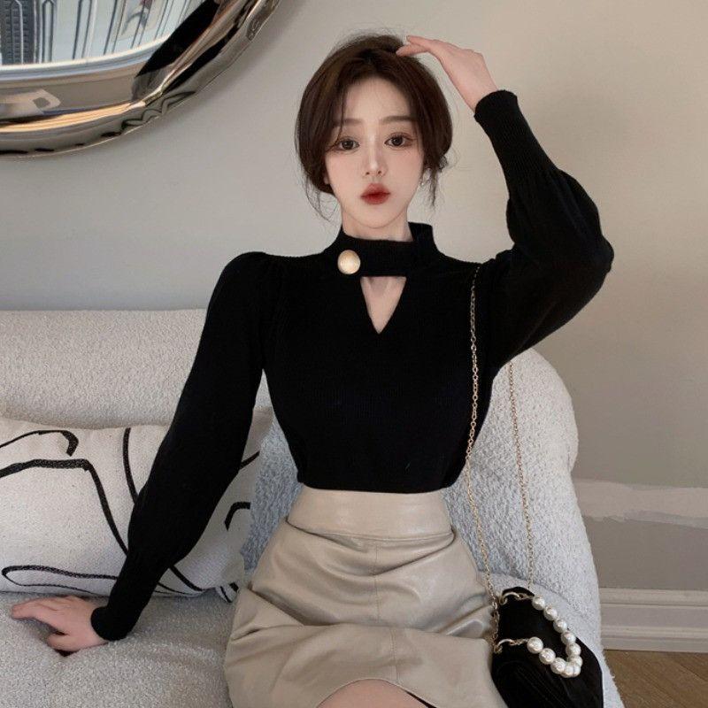 Трикотажный пуловер с полувысоким воротником, свитер, женский свитер с ключицей и длинными рукавами, осенне-зимний повседневный однотонный свитер, пуловеры, топы