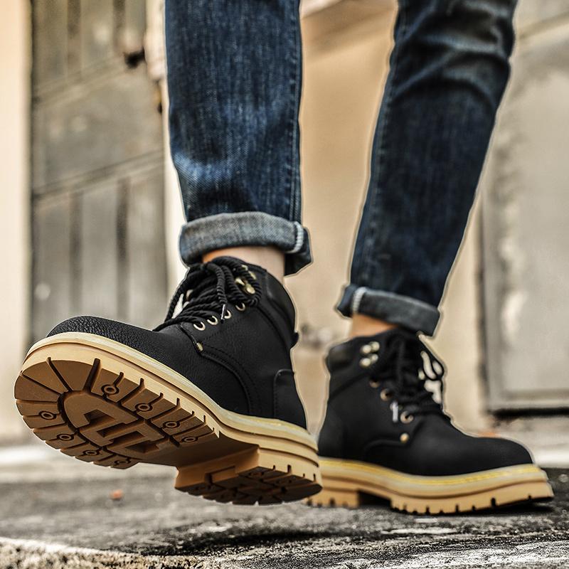 Модные мужские ботинки со средним верхом, повседневная кожаная обувь