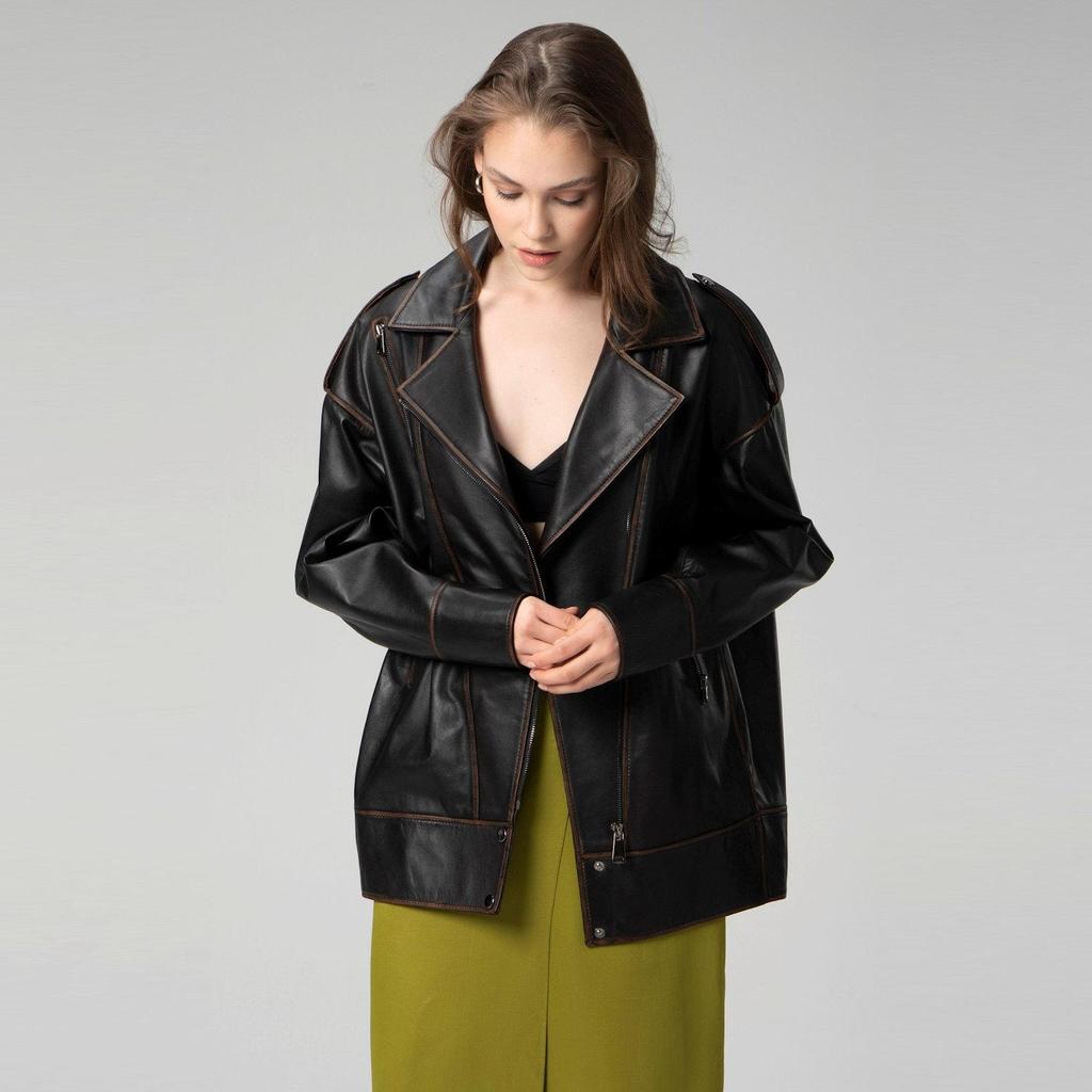 Dericlub Женское пальто из 100% натуральной кожи