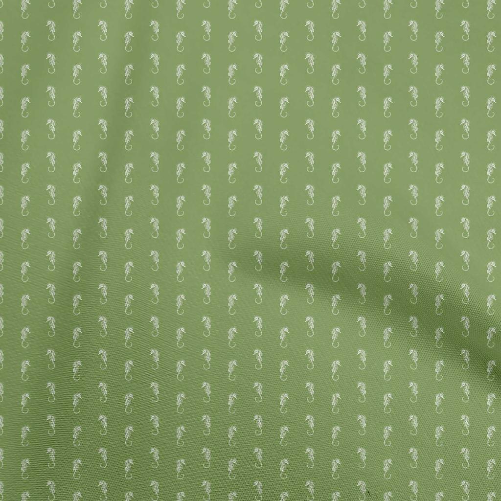 oneOone Ткань Cotton Flex Light Green, морской конек, швейные проекты, принты на ткани по ярдам 40 дюймов