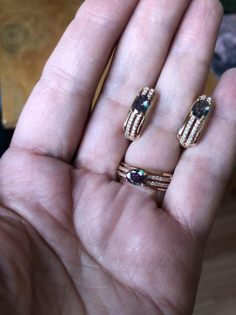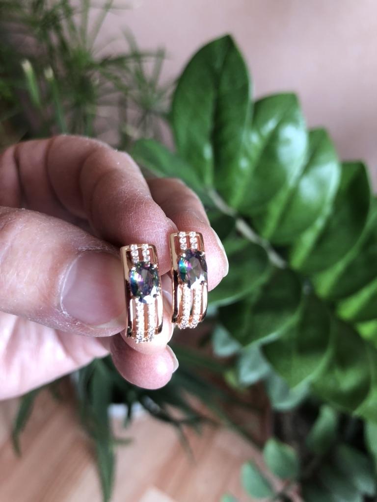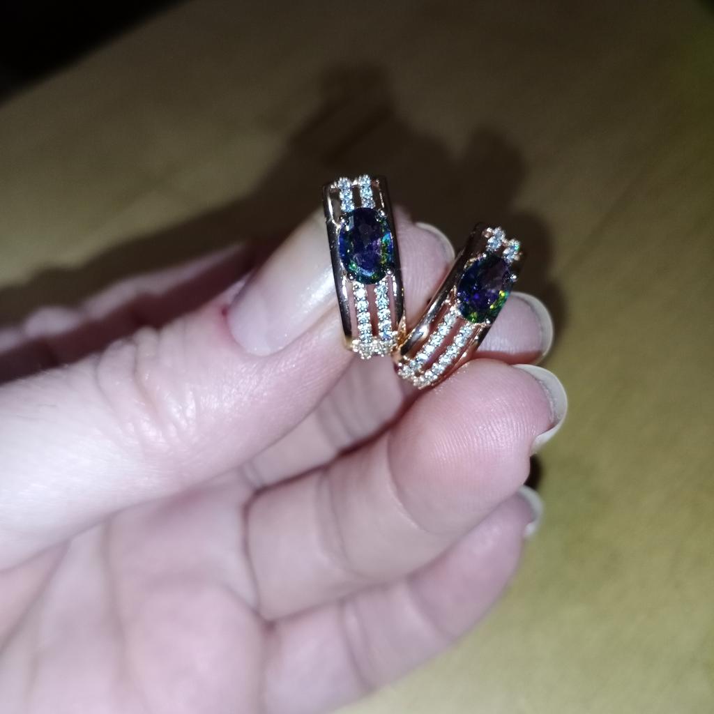 Великолепнейшие серьги! 🔥 Шикарно смотрятся и выглядят богато🎉, как настоящее ювелирное изделие 😍 Все замочки крепкие, застёжка плотная 👍 Все камушки на месте, переливаются на свету нереально 🔥 Я в полном восторге от них 🎉 К серьгам заказала ещё колечко, получился обалденный комплект 🎉 Если бы у этого продавца был бы ещё такой же кулон к этим серьгам, то вообще было бы идеально 👍