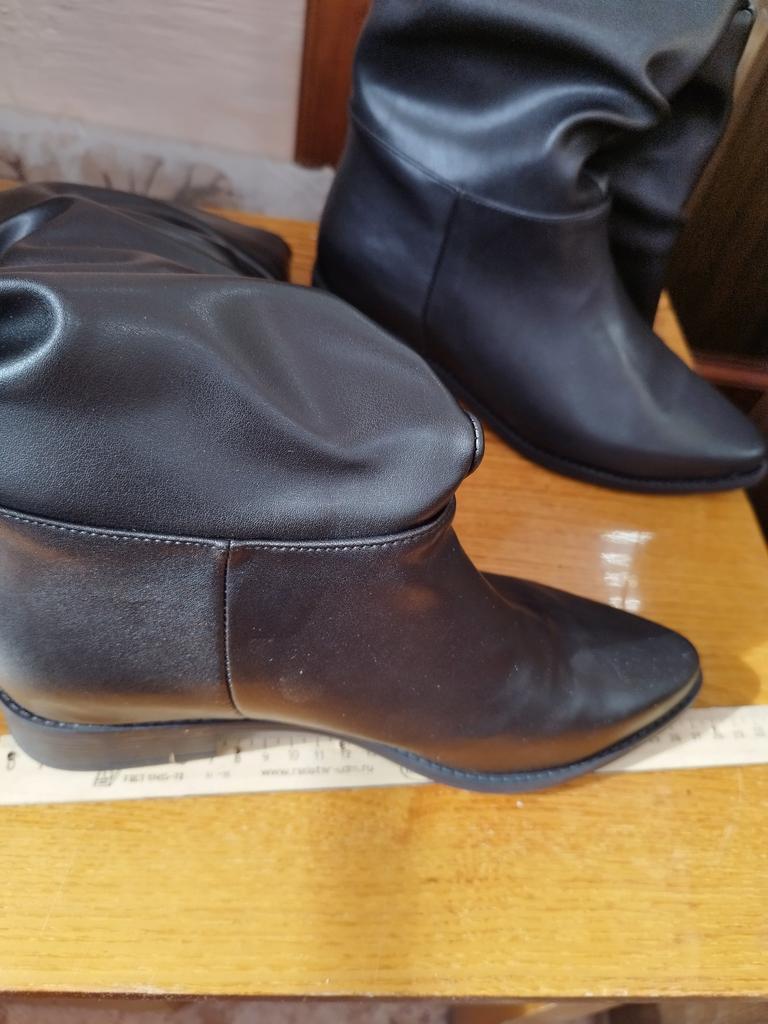 Сапоги за свои деньги очень даже не плохие. Внешне полностью соответствуют фото. Но к большому сожалению носить я их не буду. Очень велики. Товара практически нет в наличии и нет ни одного отзыва. Очень досадно. Обычно беру 37 размер на 36-ой. Так как его не было, не рискнула взять 36. Некоторые "знатоки" убедили, что турецкая обувь маломерит. В итоге размер 38 - по внешним границам длина подошвы -27 см. Внутри, насколько смогла оценит, 24 см. Голенище в обхвате почти 40 см. Для меня это слишком. Перезаказывать не буду. Товар шёл более месяца, будет уже не актуально. Часто пишут, что продавец положил подарочек, в моём случае, видимо, это рожочек для обуви.