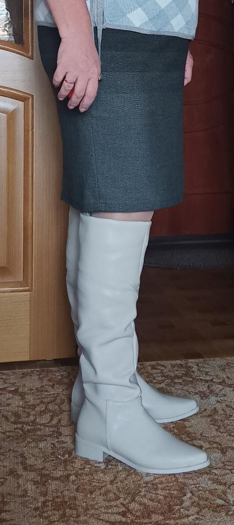 Супер!!!!!! Очень!!! Очень!!!! Понравились. Просто сказка!!!!! В России не могла подобрать себе сапоги из-за широкой голени.,а тут просто как на меня шили . Качество огонь!!!! Огромное спасибо за чудесный товар!!!! Однозначно рекомендую всем к покупке!!!! И спасибочки за подарки!!!!! Заказала 36 размер но ношу 35, идеально подходит с тоненьким носочком. Буду заказывать ещё белые.