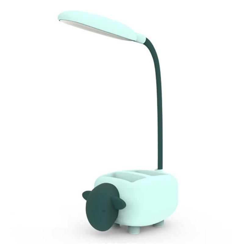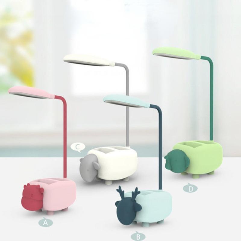 Маленькая настольная лампа для учебы, перезаряжаемая через USB, прикроватная лампа для чтения в общежитии с держателем для ручек, настольная лампа с рисунком