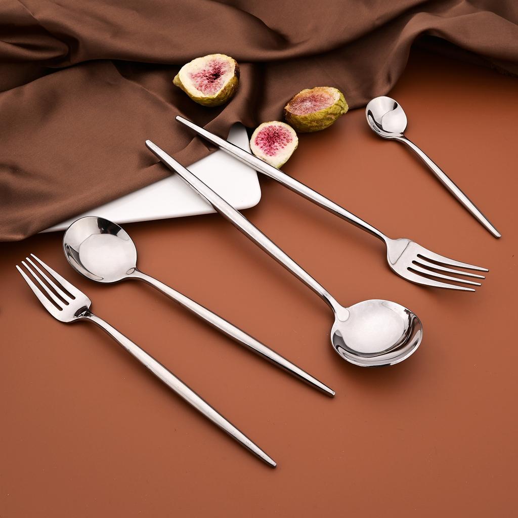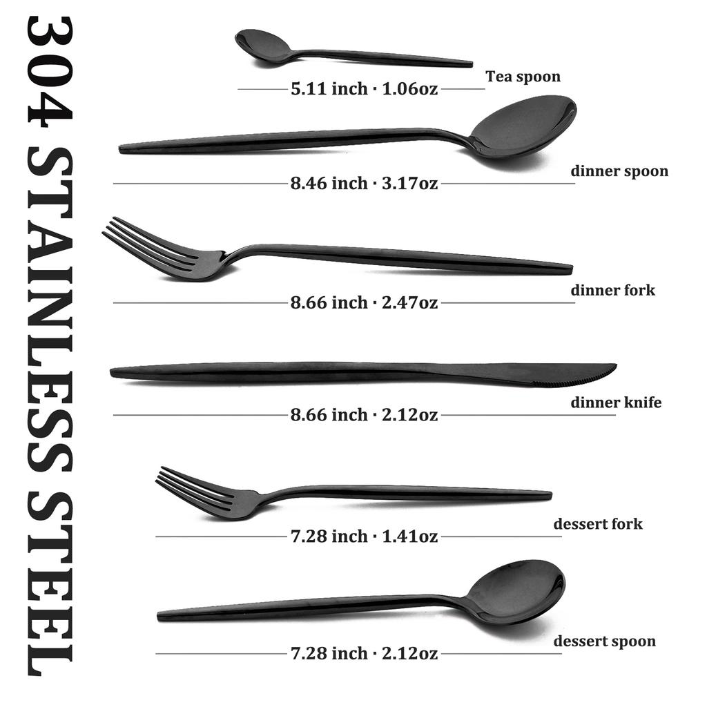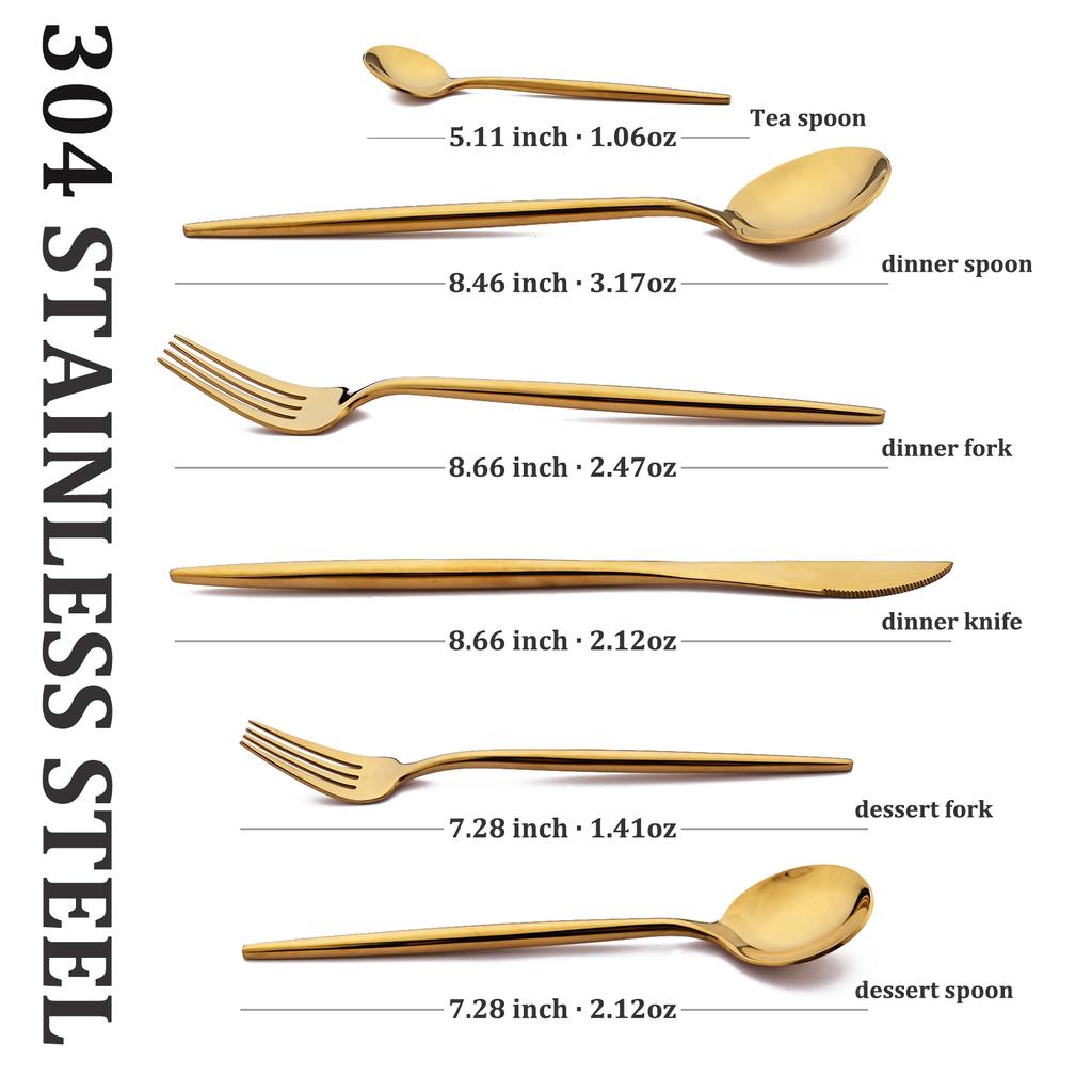 Пакет включает: 1 шт обеденный нож + 1 шт столовая вилка + 1 шт столовая ложка + 1шт десертная ложка + 1шт десертная вилка + 1шт чайная ложка